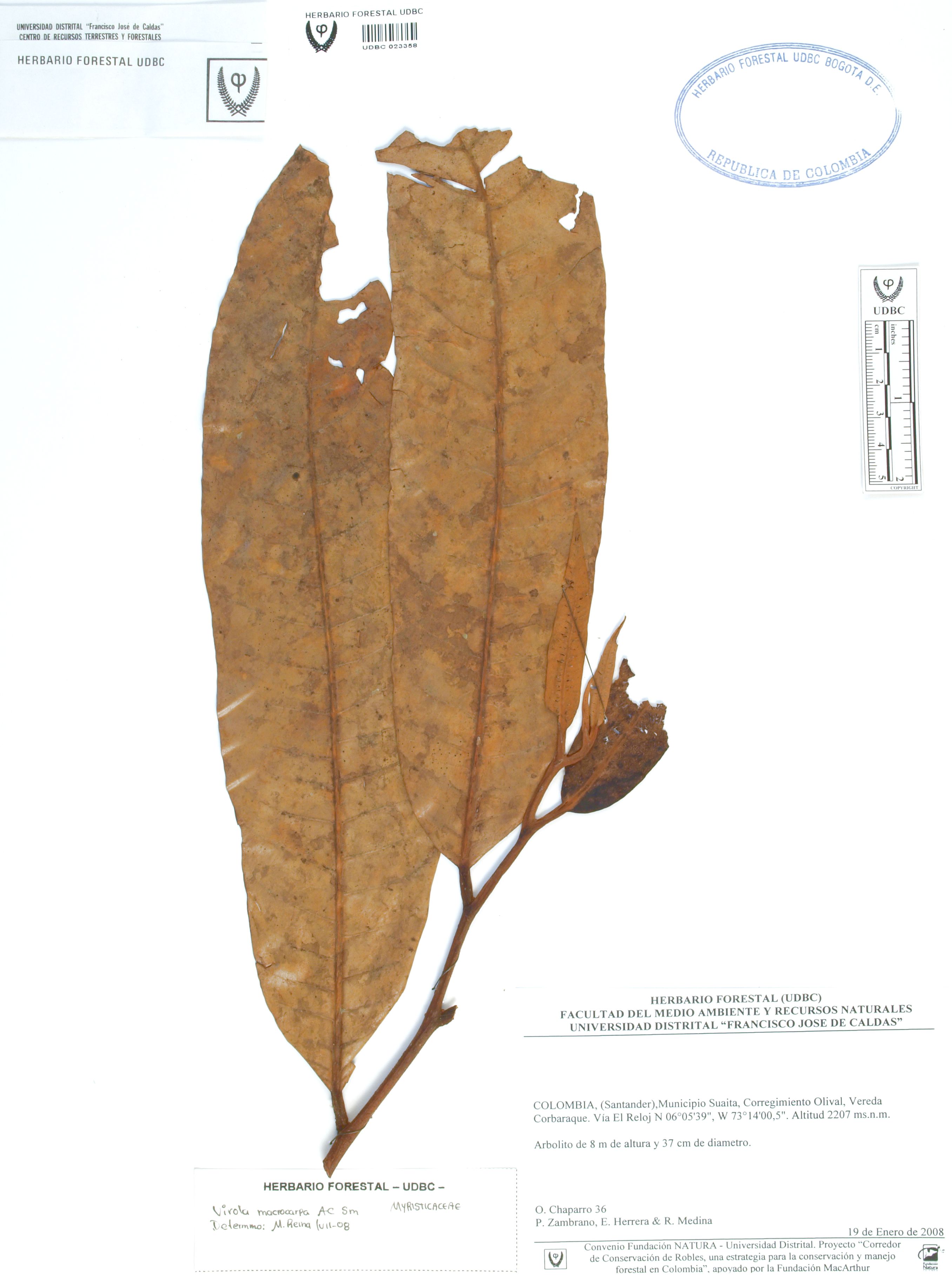 Fotografía del ejemplar Chaparro, O. 36, determinado como Virola macrocarpa en el año 2008