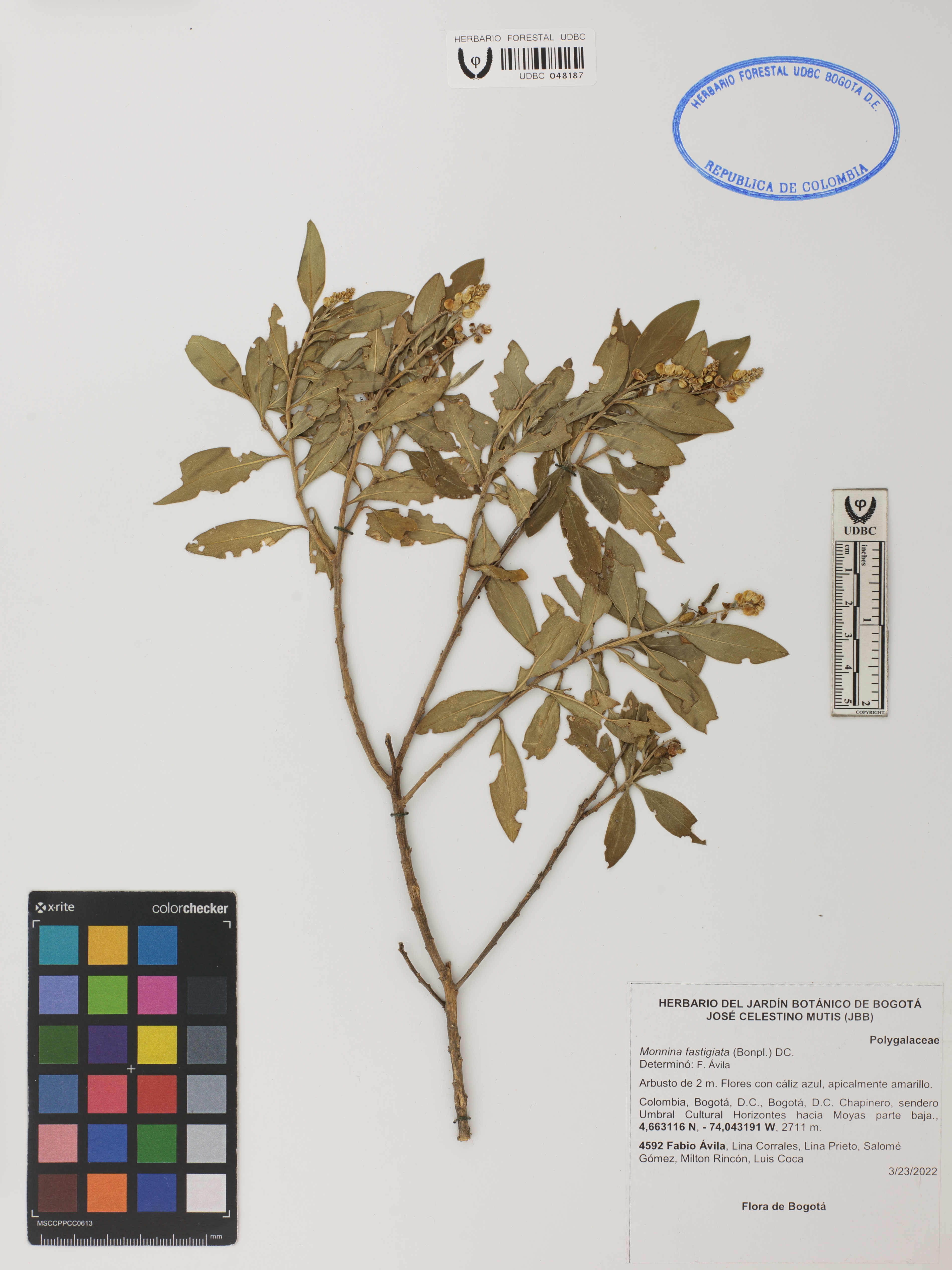 Fotografía del ejemplar Ávila, F. 4592, determinado como Monnina fastigiata en el año 2022