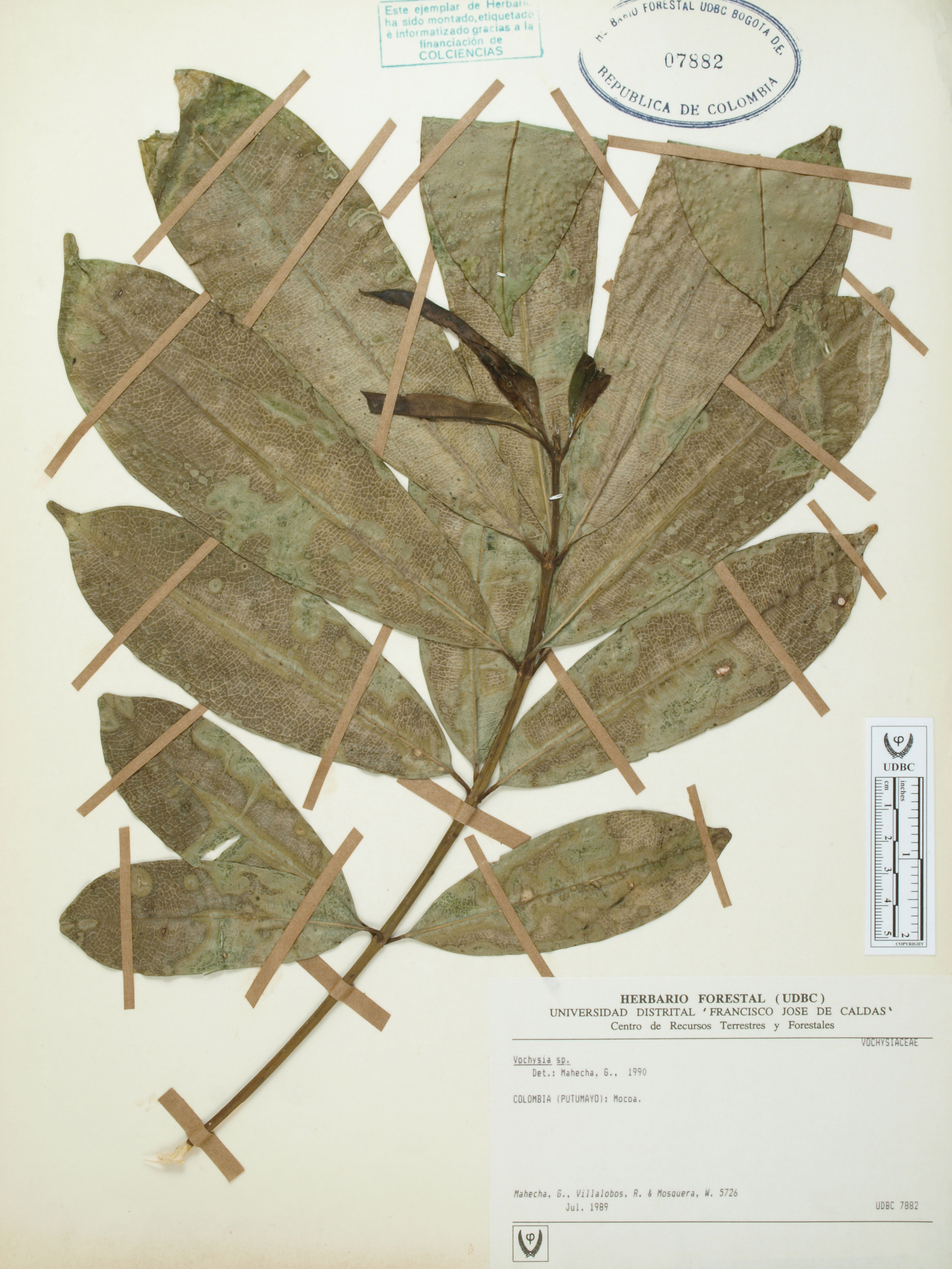 Fotografía del ejemplar Mahecha, G. 5697, determinado como Vochysia sp.