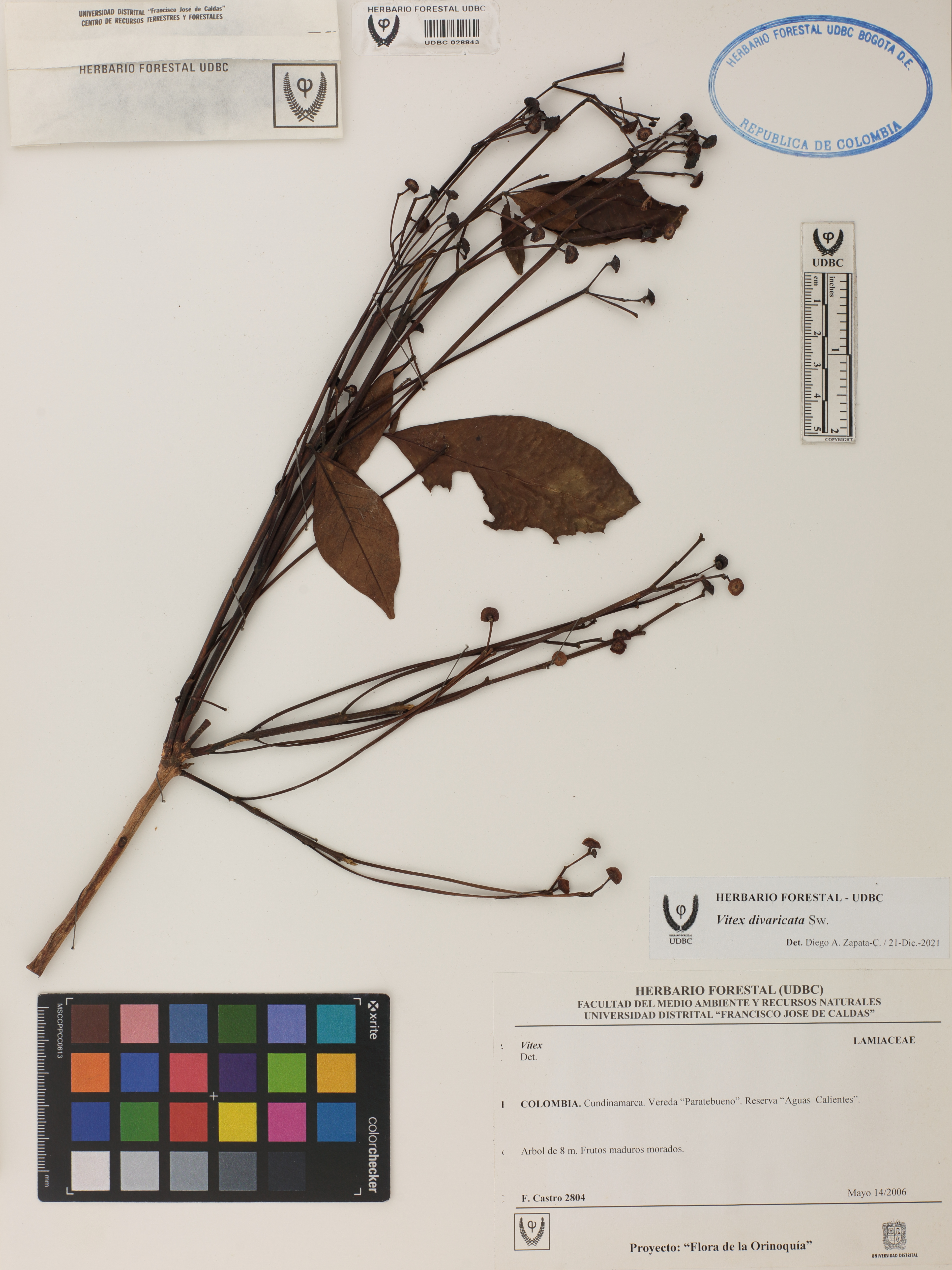 Fotografía del ejemplar Castro, F. 2804, determinado como Vitex divaricata en el año 2021