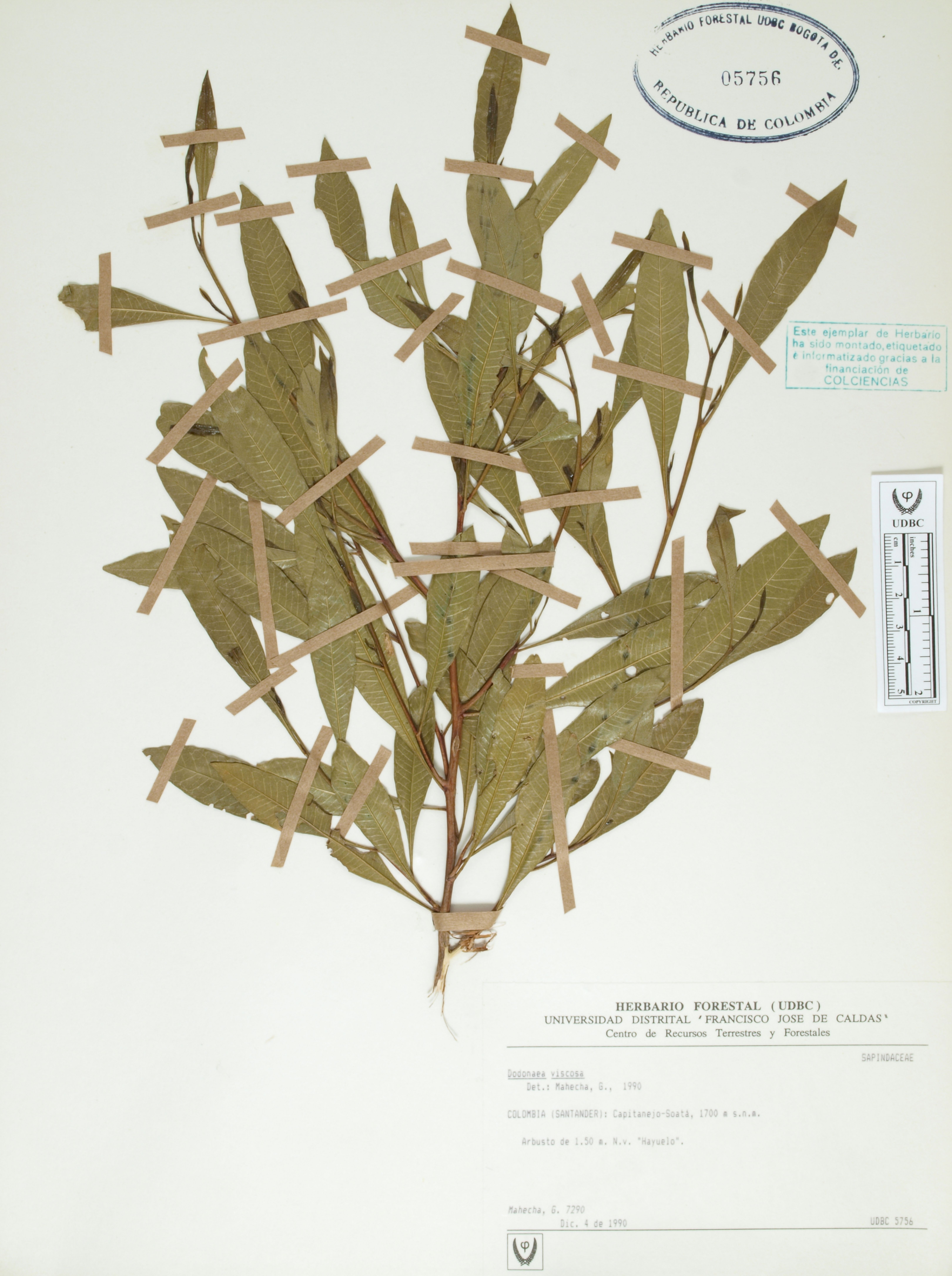 Fotografía del ejemplar Mahecha, G. 7290, determinado como Dodonaea viscosa