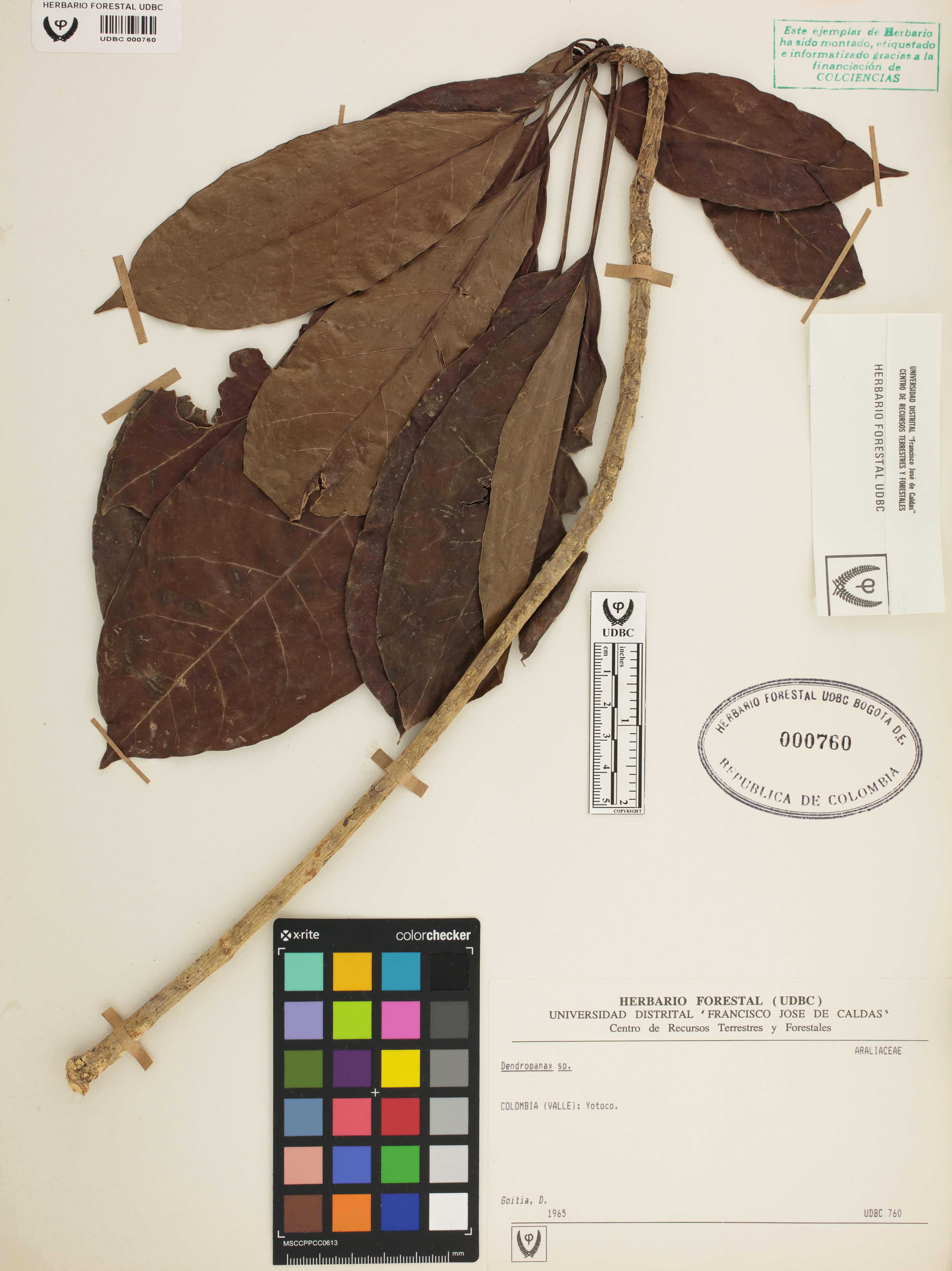 Fotografía del ejemplar Goitia, D., determinado como Dendropanax sp.