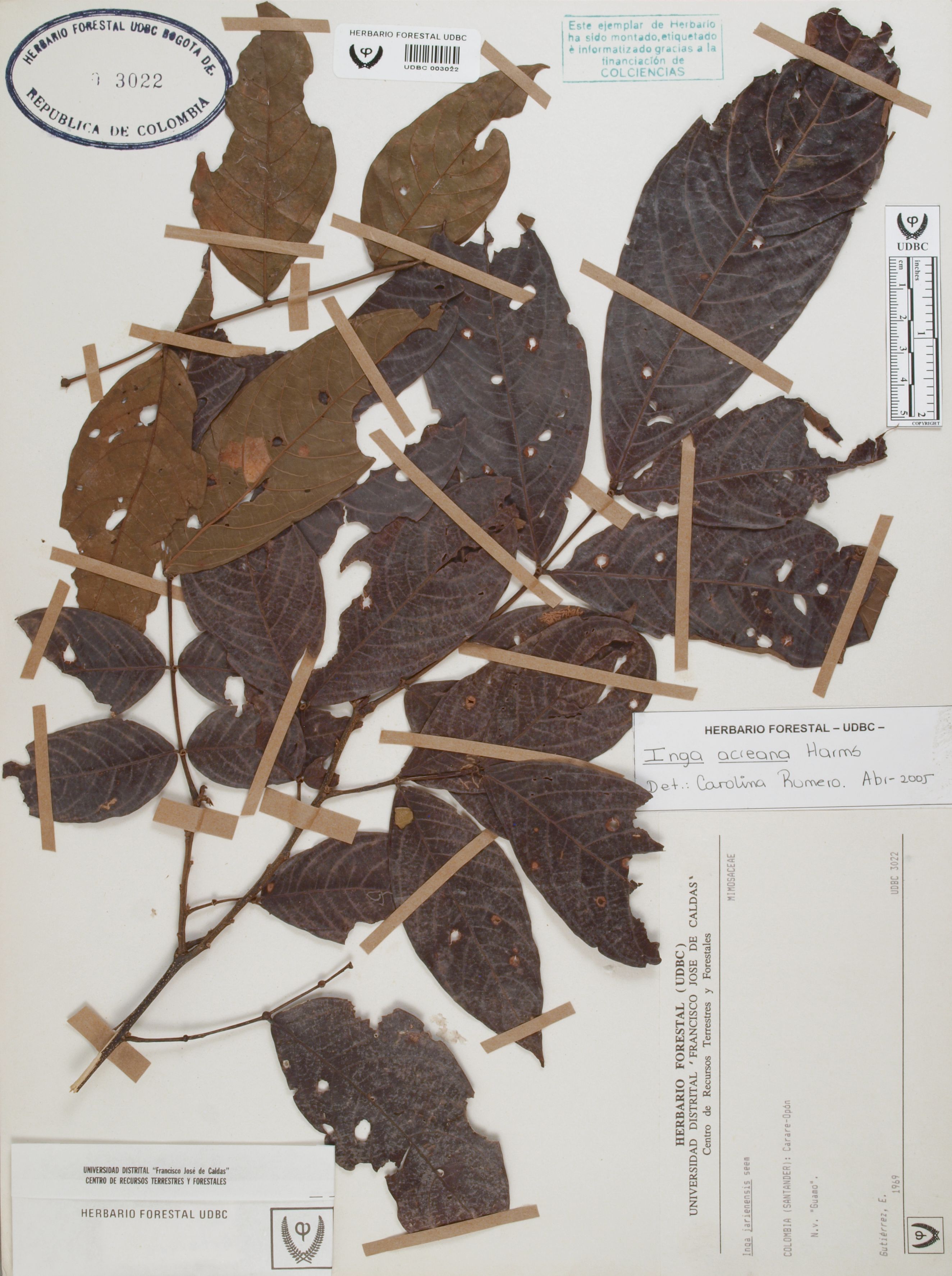 Fotografía del ejemplar Gutiérrez, E., determinado como Inga acreana en el año 2005