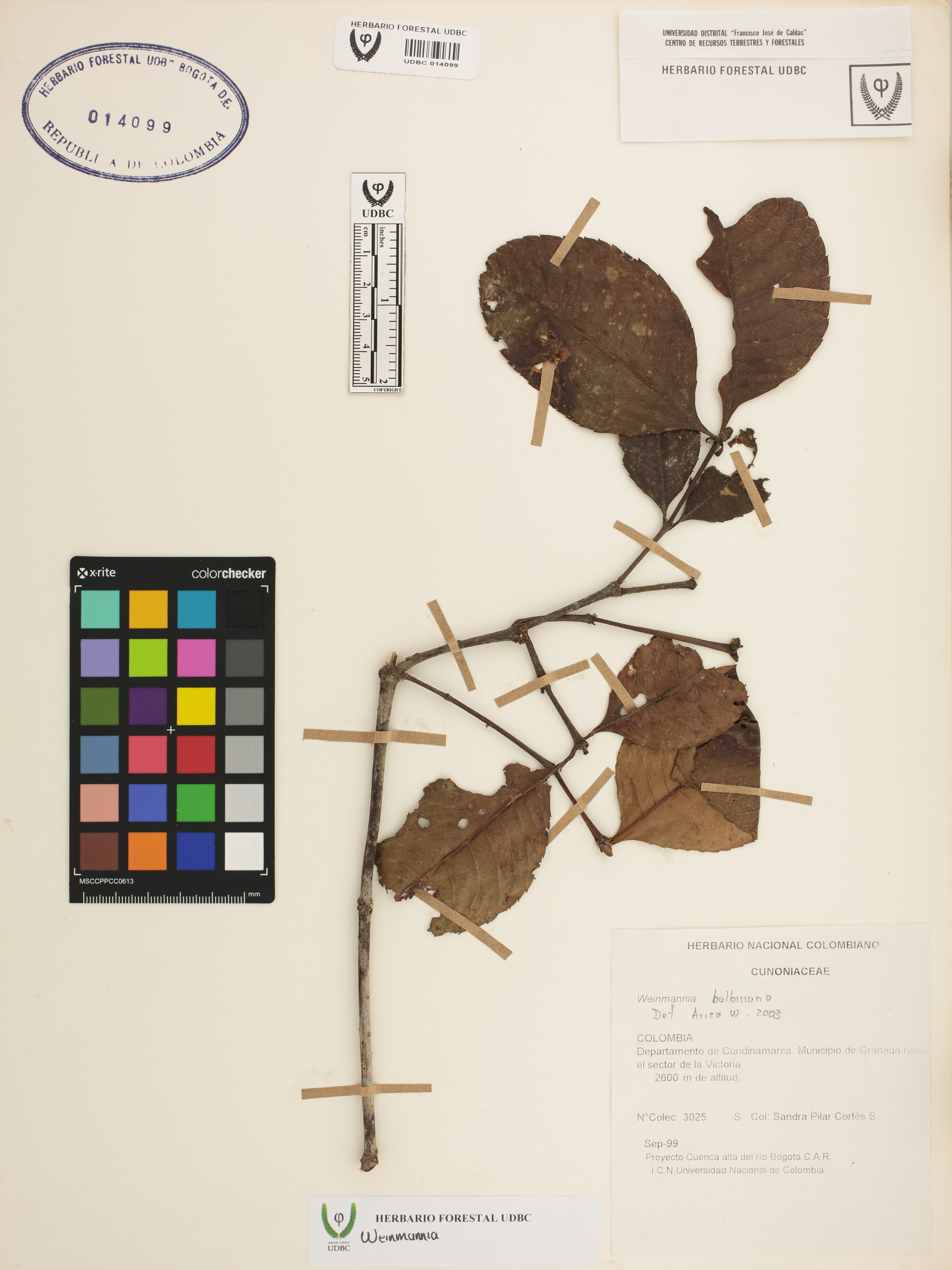 Fotografía del ejemplar Cortés, S. 3025, determinado como Weinmannia sp.