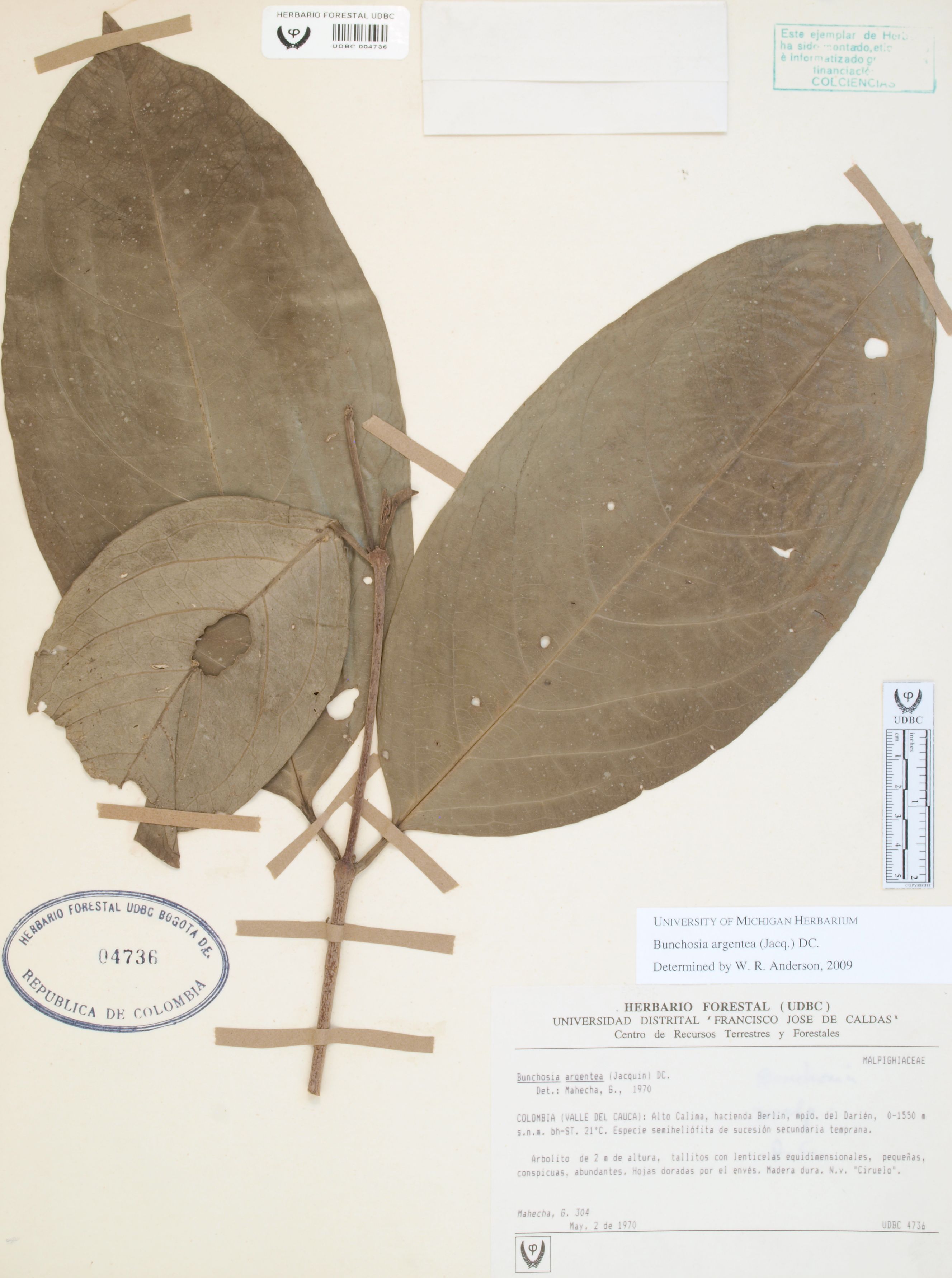 Fotografía del ejemplar Mahecha, G. 304, determinado como Bunchosia argentea en el año 2009