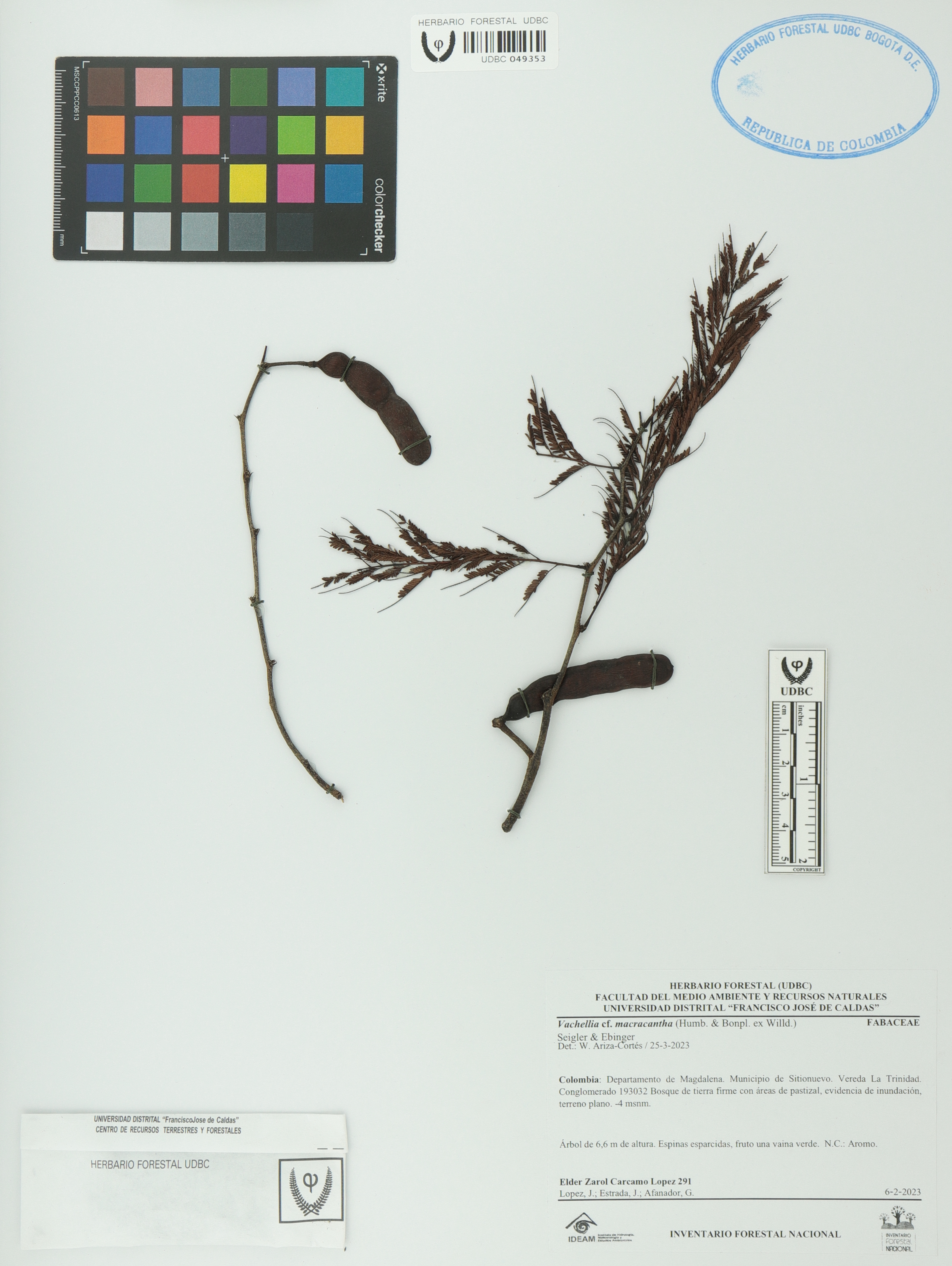 Fotografía del ejemplar Cárcamo-L., E. 291, determinado como Vachellia macracantha en el año 2023