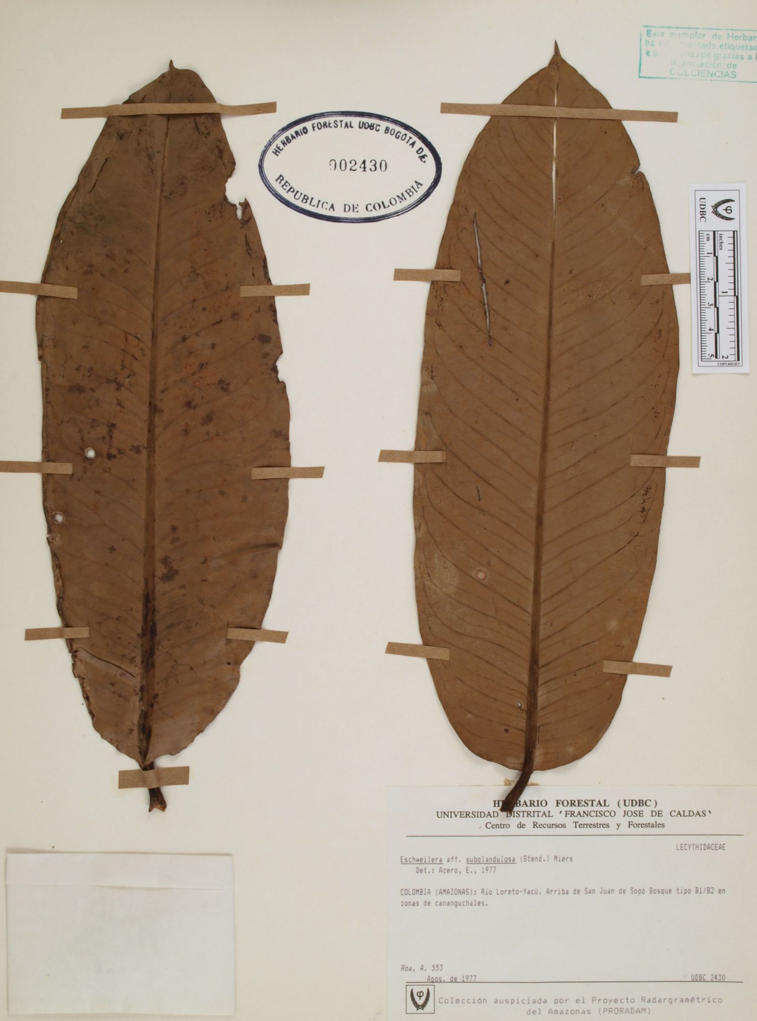 Fotografía del ejemplar Roa, A. 553, determinado como Eschweilera subglandulosa en el año 1977