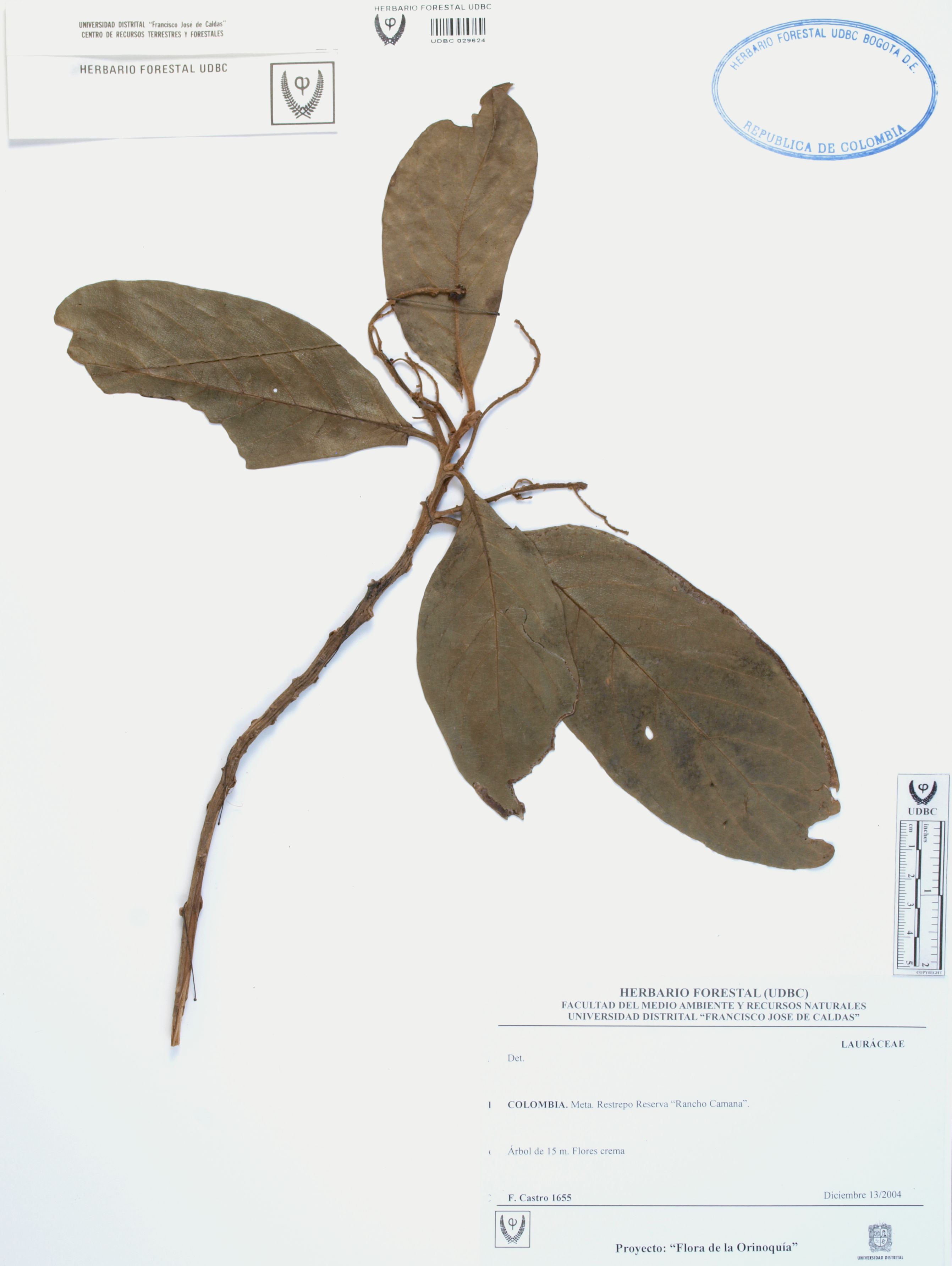 Fotografía del ejemplar Castro, F. 1655, determinado como Lauraceae