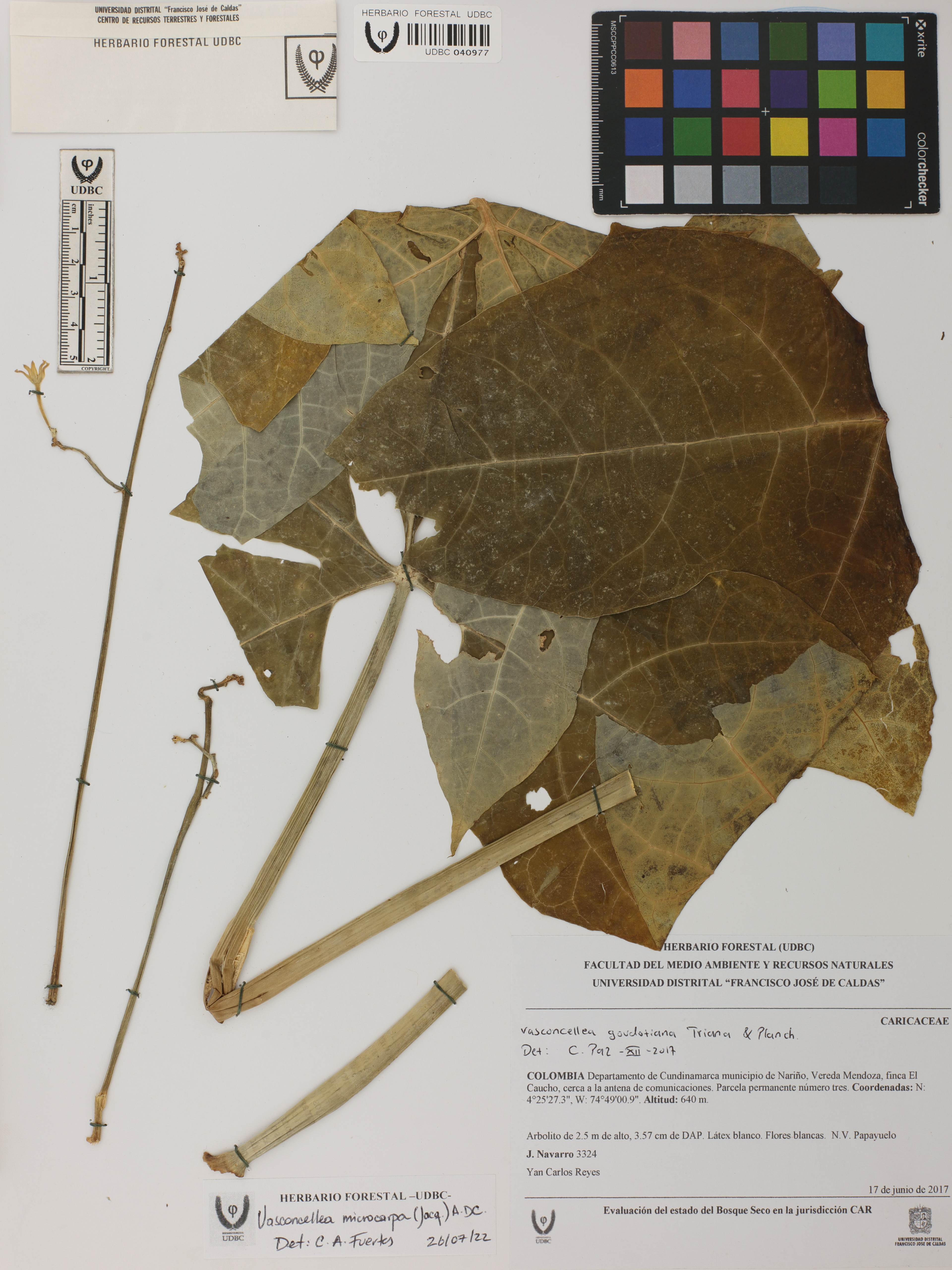 Fotografía del ejemplar Navarro, J. 3322, determinado como Vasconcellea microcarpa en el año 2022