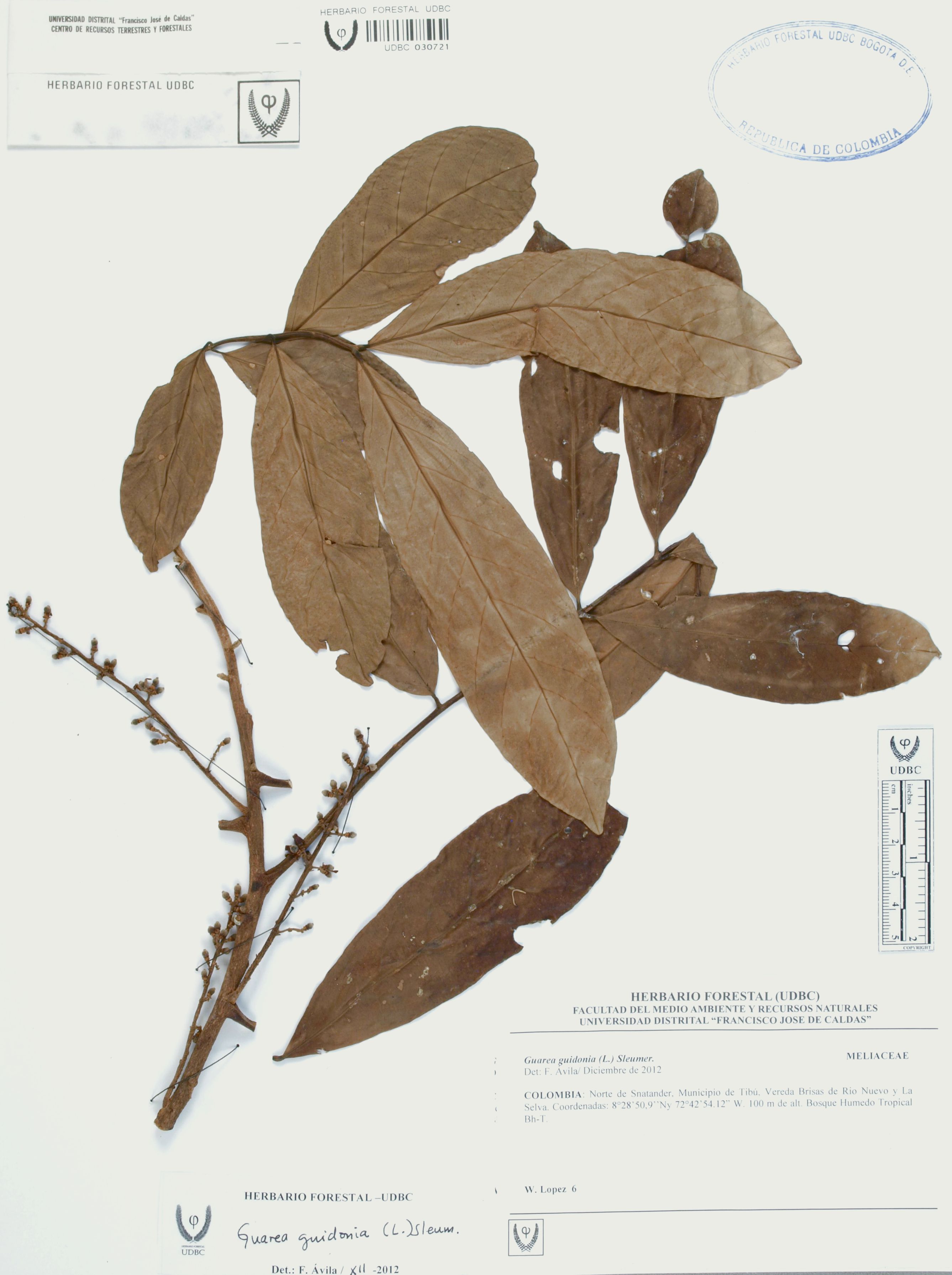 Fotografía del ejemplar López, W. 6, determinado como Guarea guidonia en el año 2012