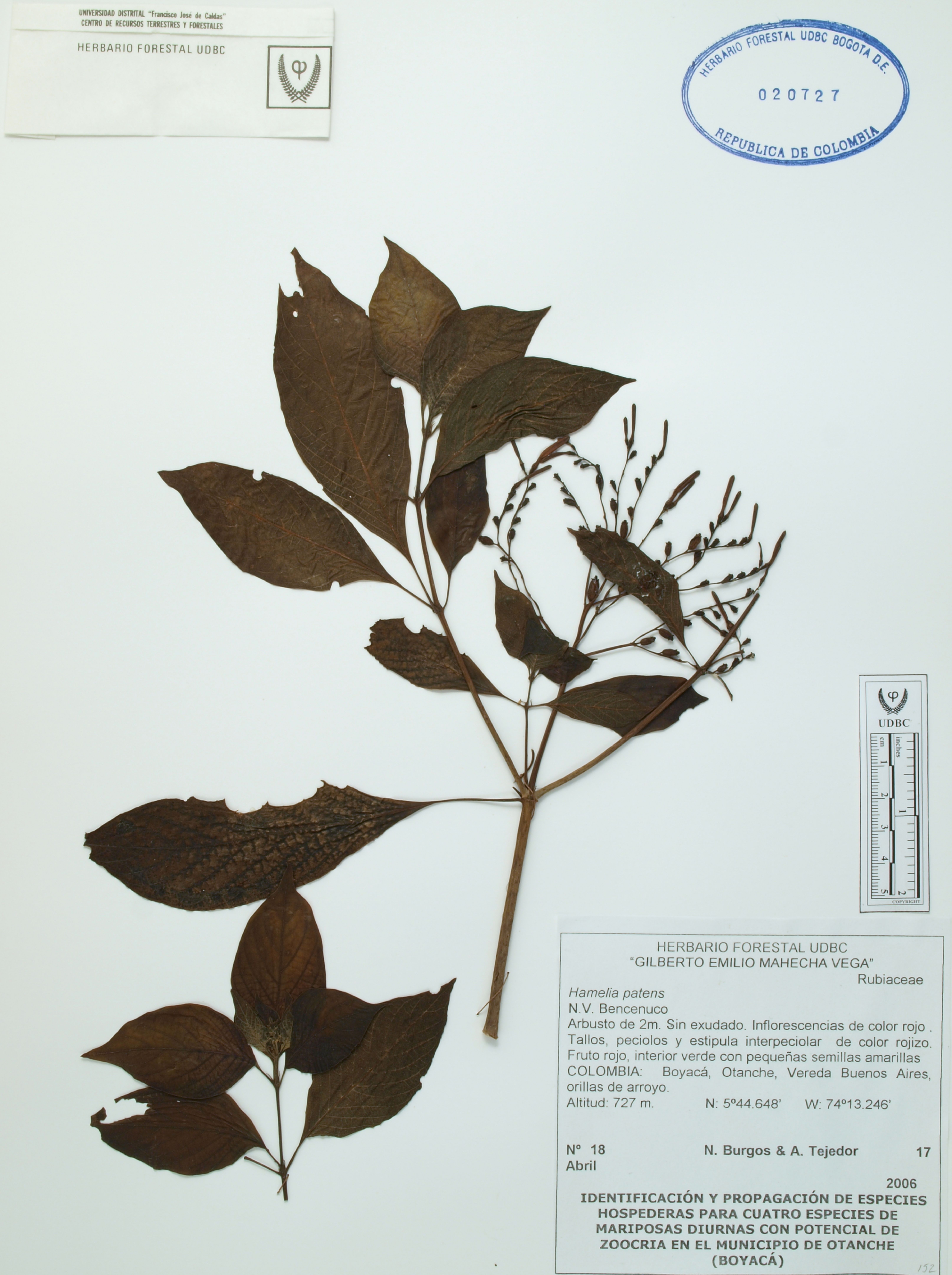 | dc.description | Fotografía del ejemplar Burgos, N. 18, determinado como Hamelia patens | |