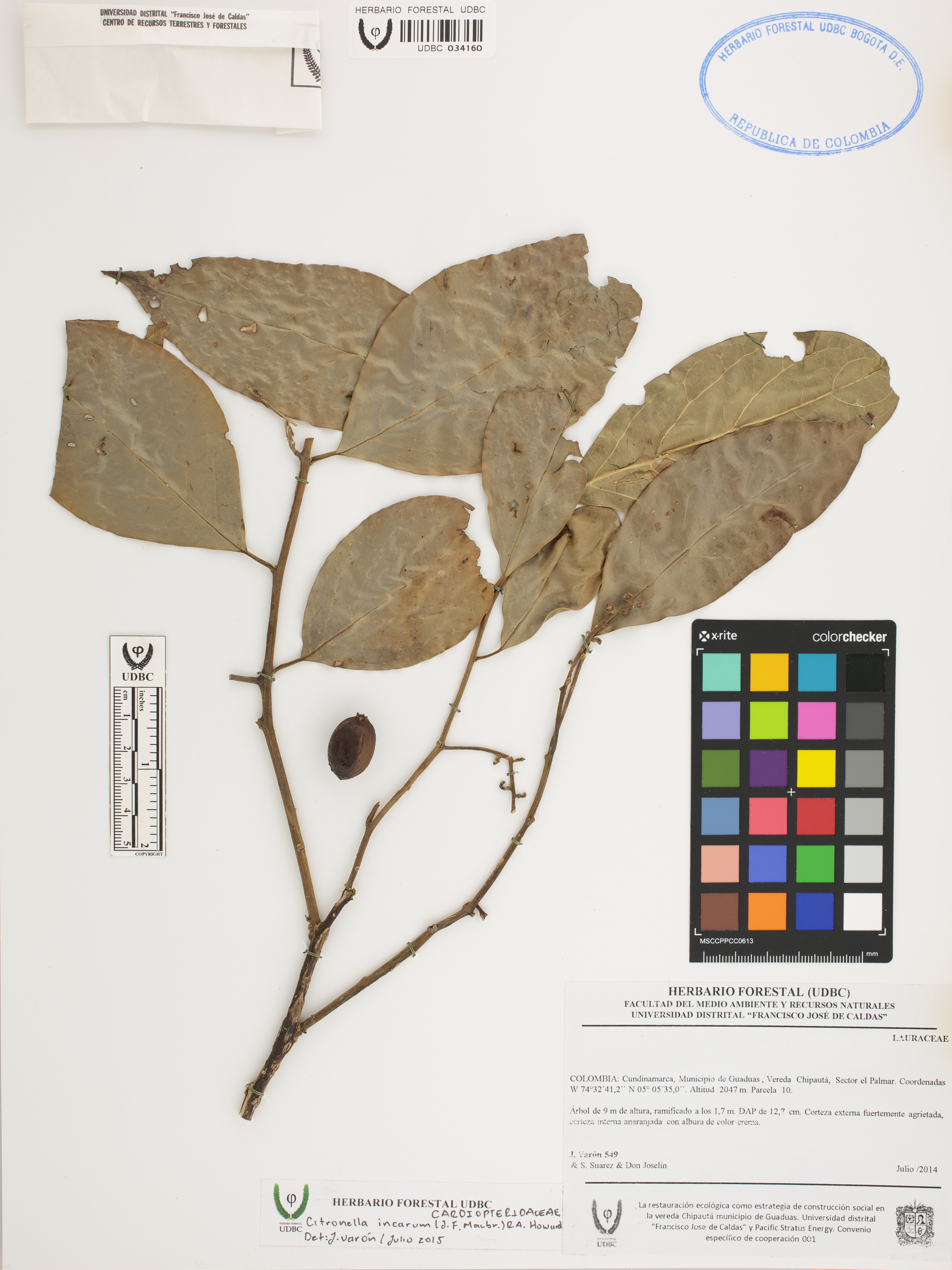 Fotografía del ejemplar Varón, J. 549, determinado como Citronella incarum en el año 2015