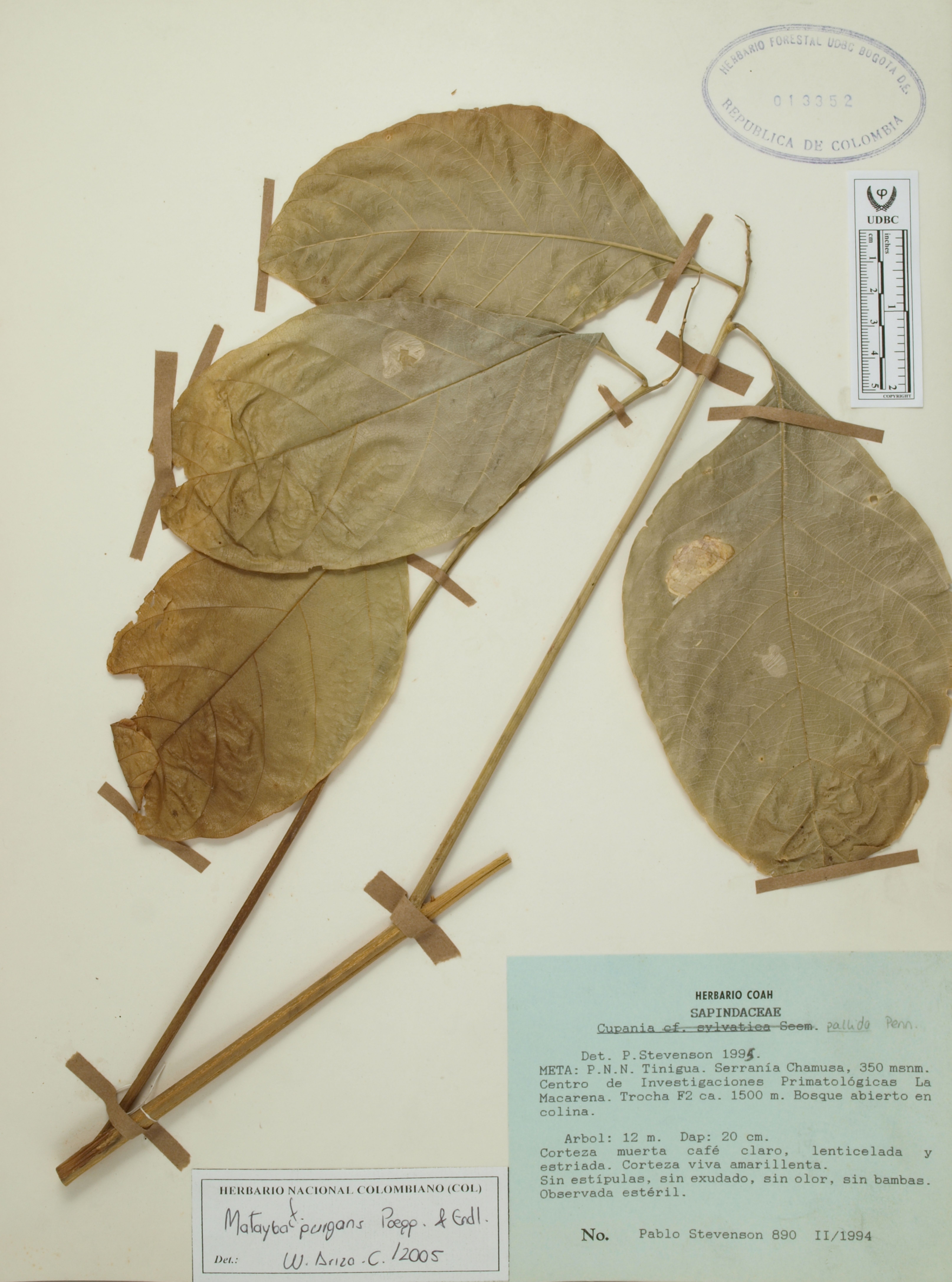 Fotografía del ejemplar Stevenson, P. 890, determinado como Matayba purgans en el año 2005