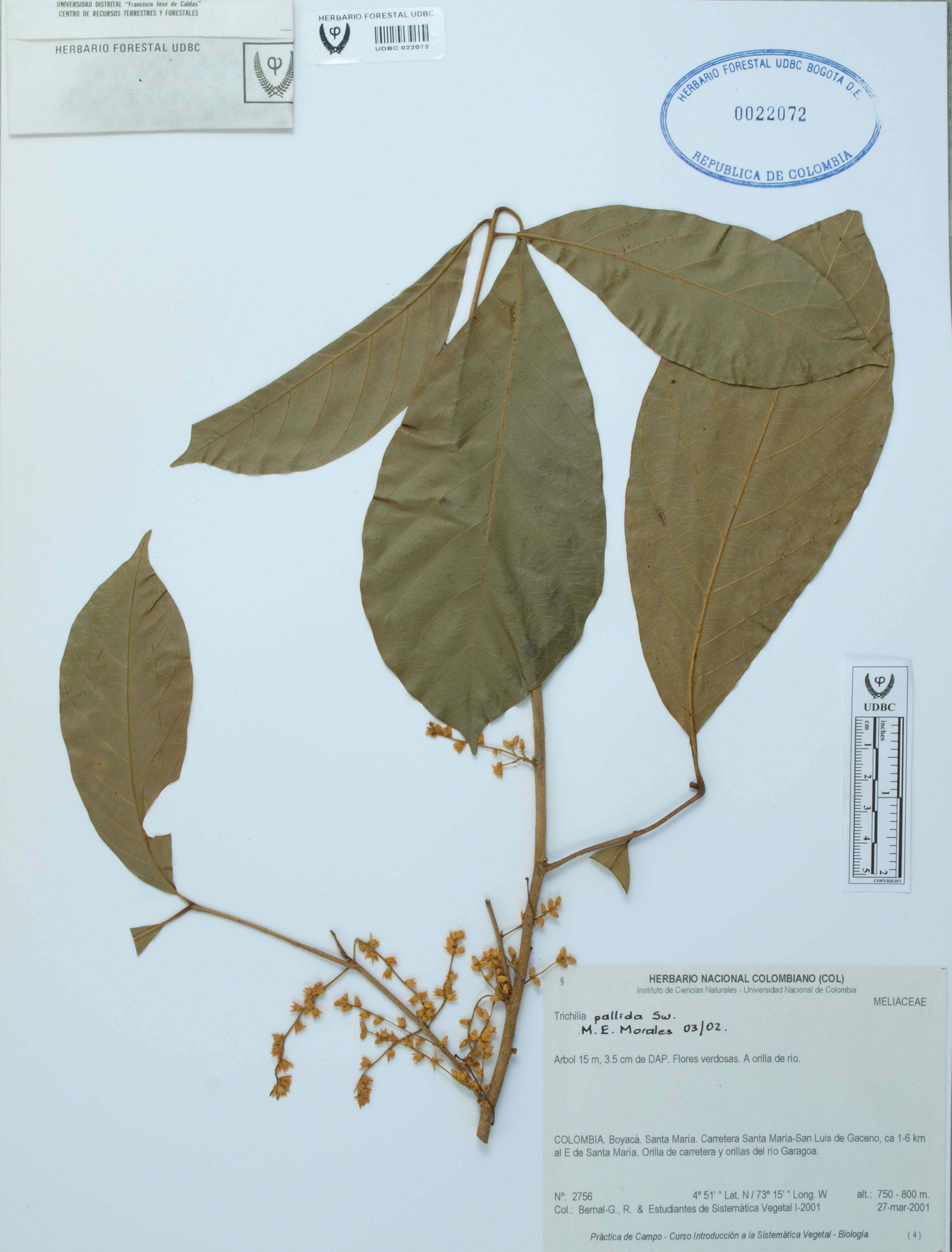 Fotografía del ejemplar Bernal, R. 2756, determinado como Trichilia pallida en el año 2002