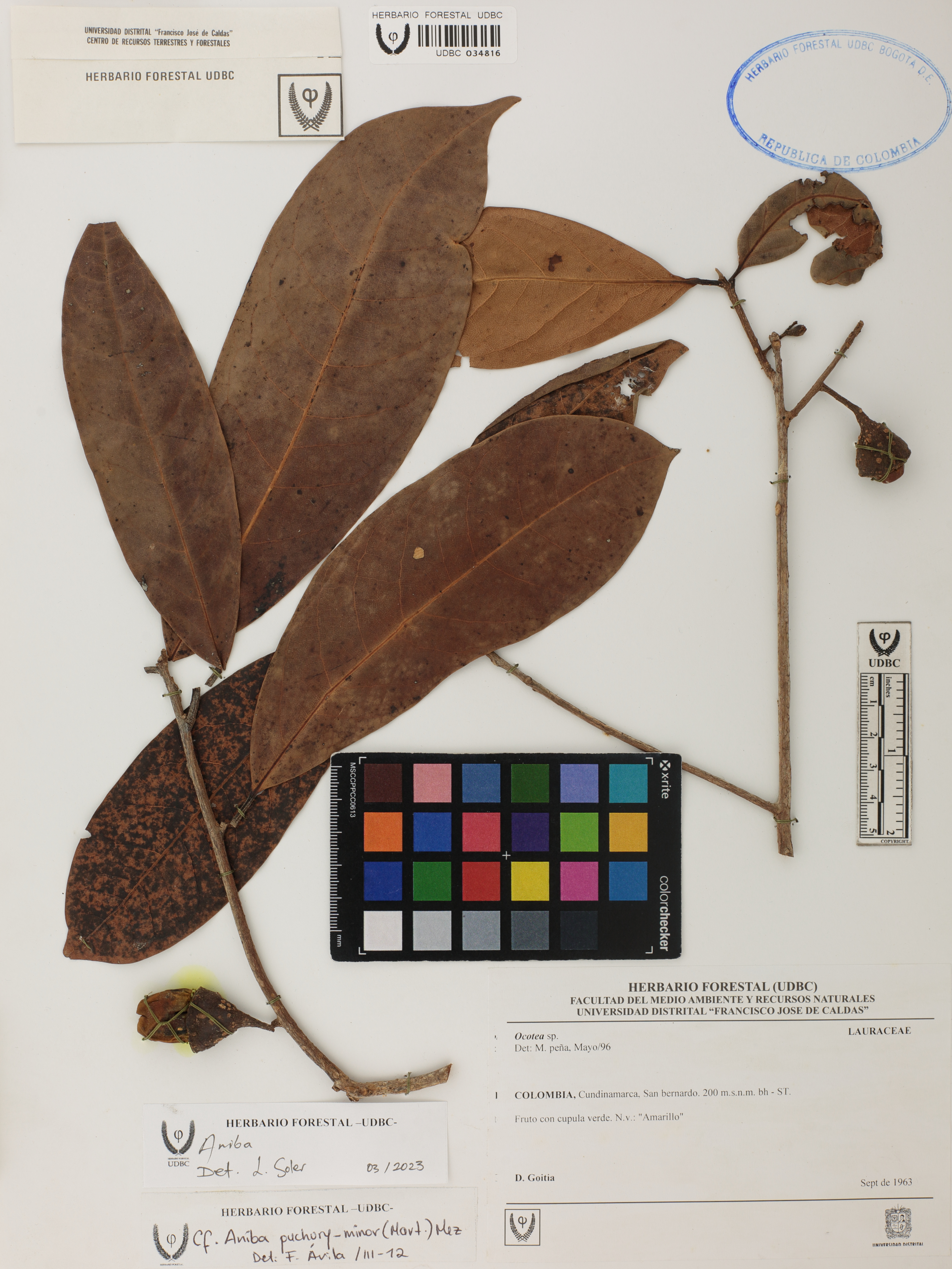 Fotografía del ejemplar Goitia, D., determinado como Aniba sp. en el año 2023