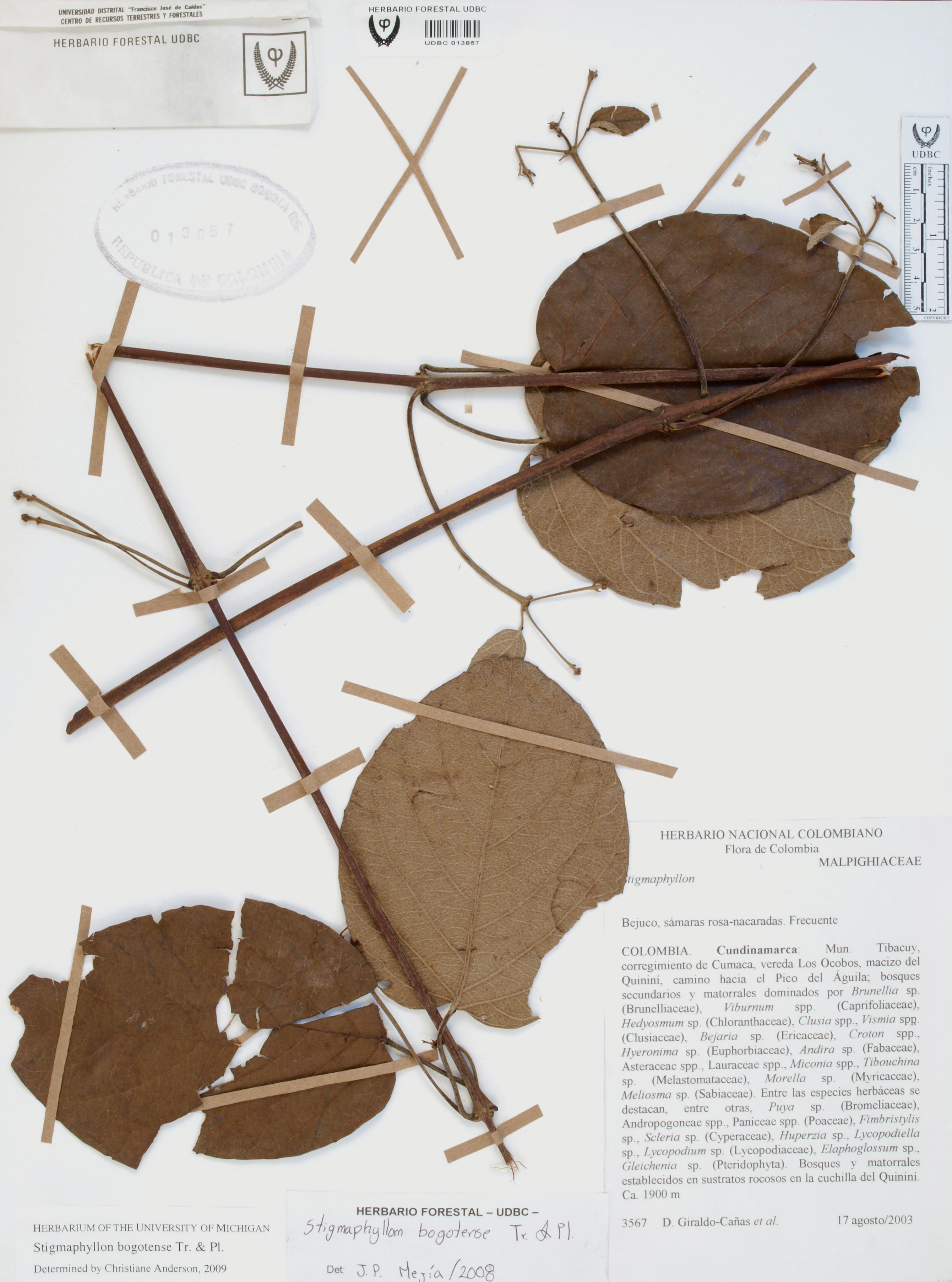 | dc.description | Fotografía del ejemplar Giraldo-Cañas, D. 3567, determinado como Stigmaphyllon bogotense en el año 2009 | |