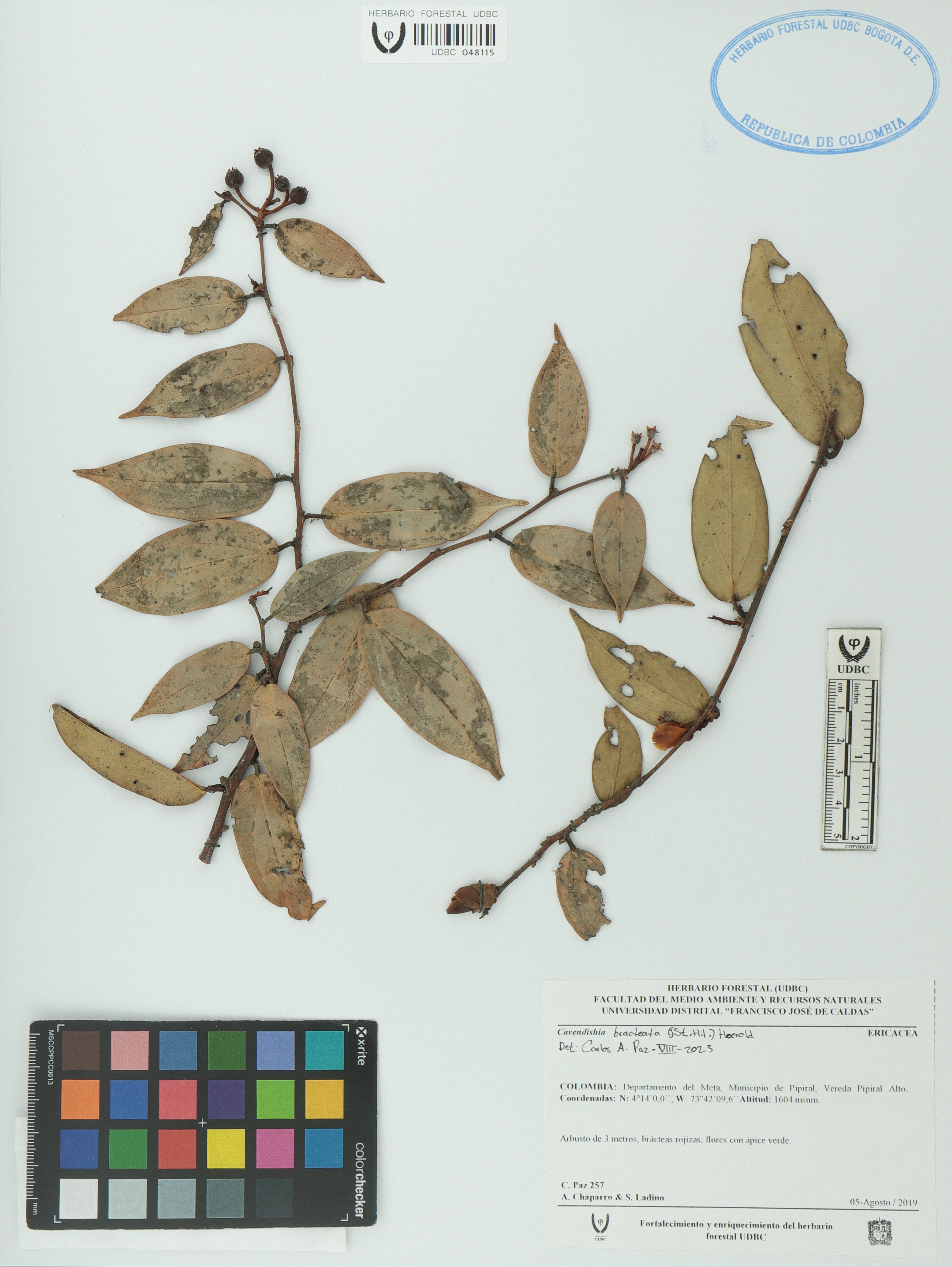 Fotografía del ejemplar Paz, Carlos A. 257, determinado como Cavendishia bracteata en el año 2023
