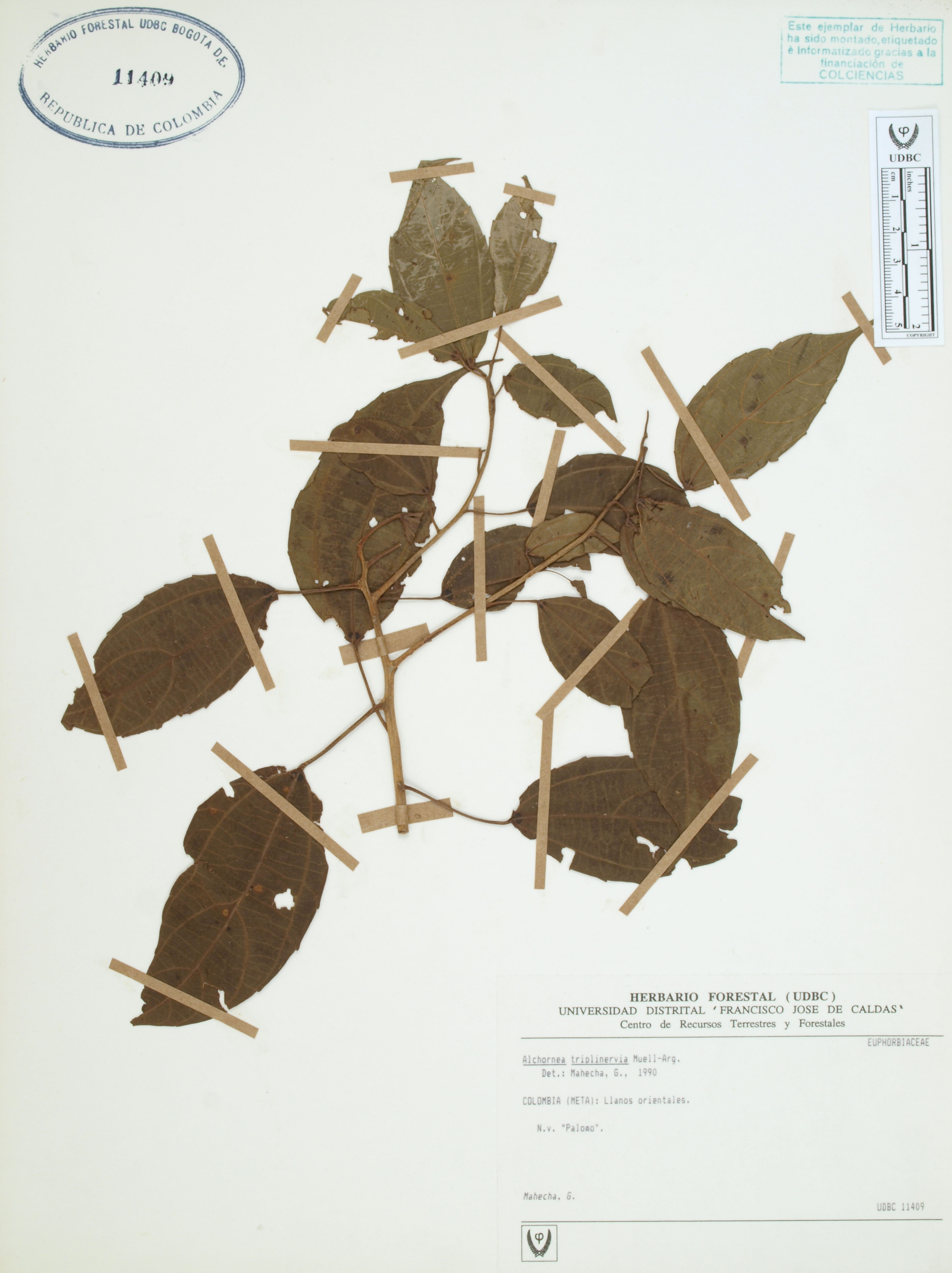 Fotografía del ejemplar Mahecha, G., determinado como Alchornea triplinervia