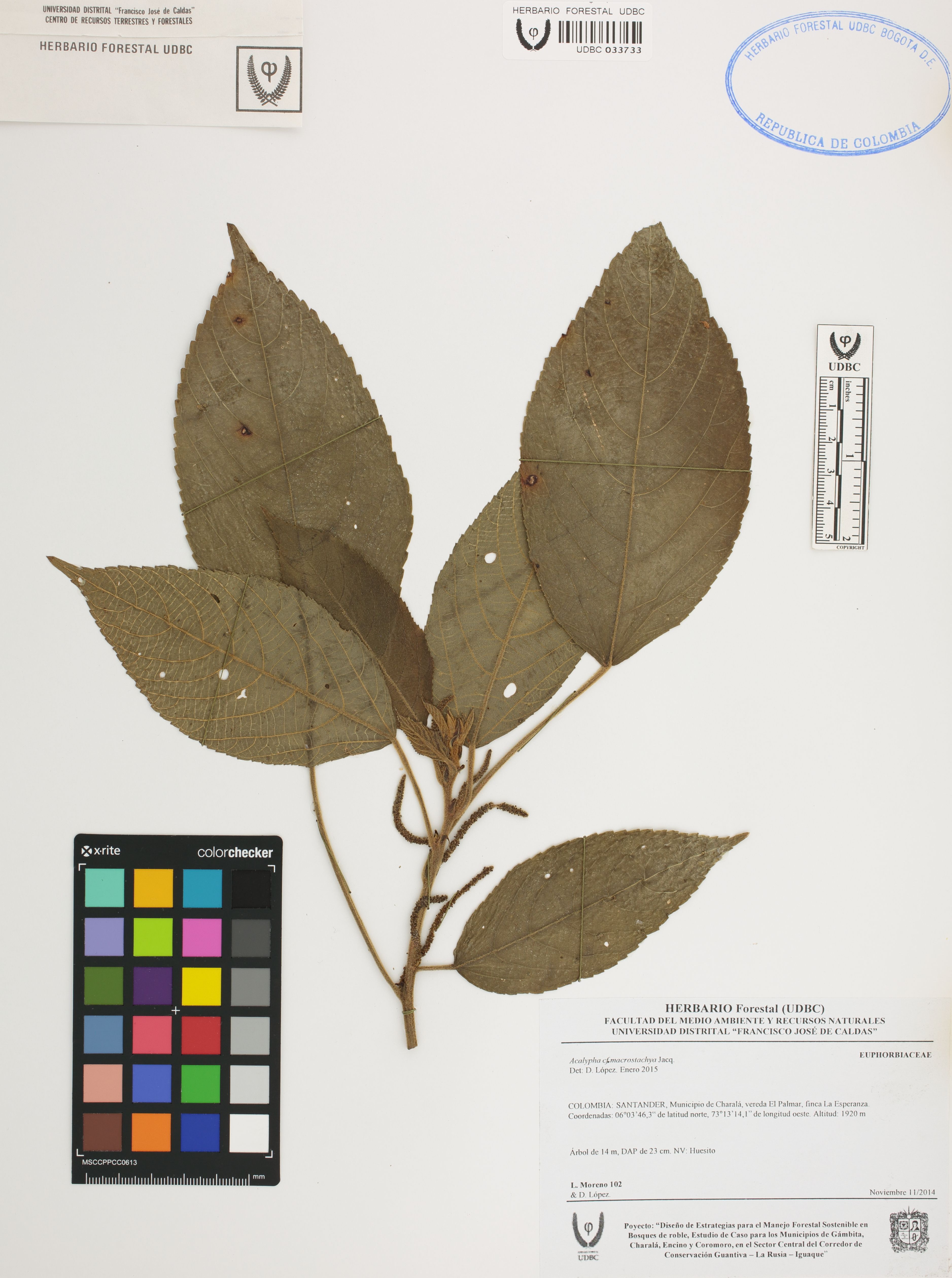 Fotografía del ejemplar Moreno, L. 102, determinado como Acalypha macrostachya en el año 2015