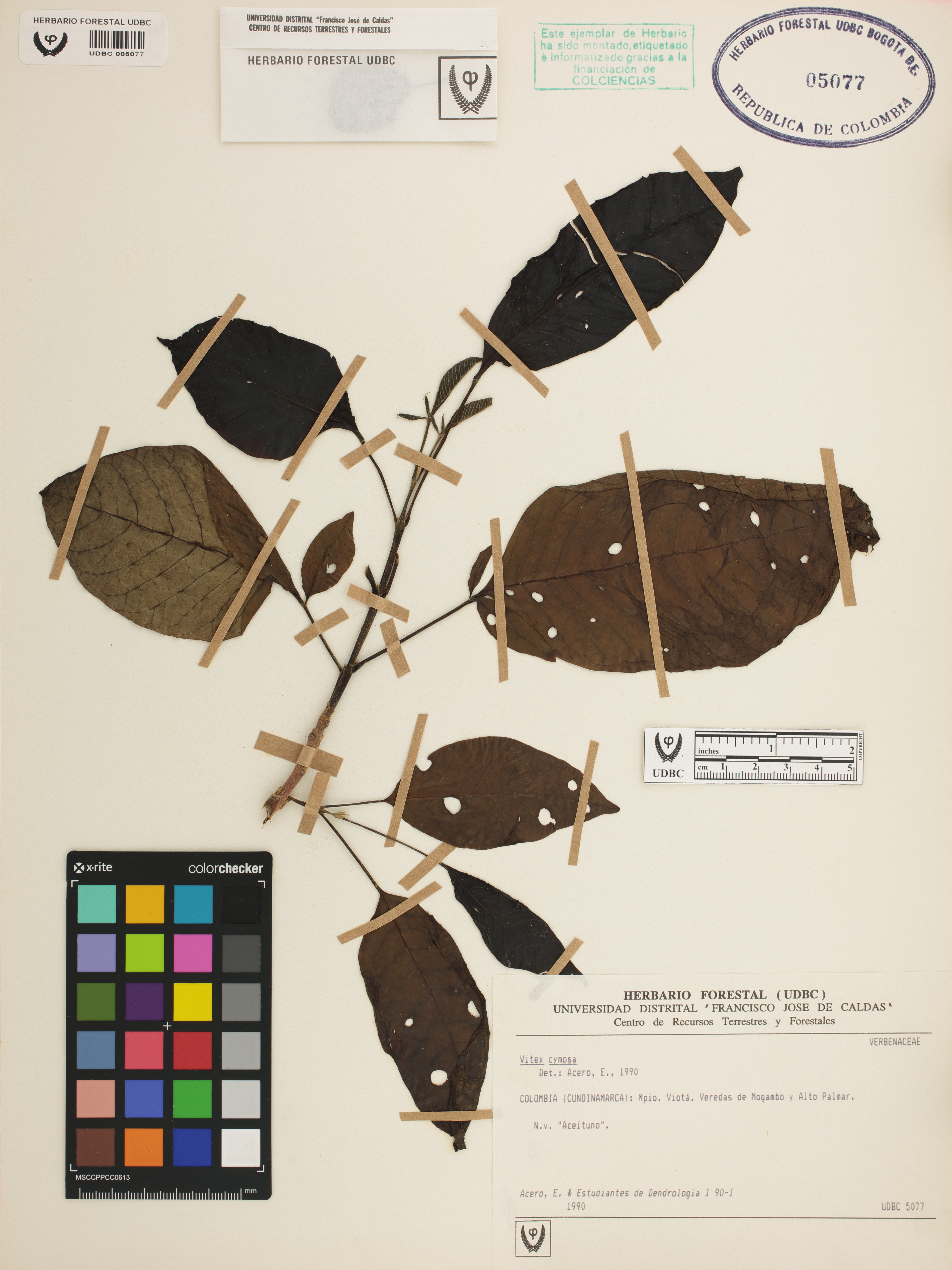 Fotografía del ejemplar Acero, E., determinado como Vitex cymosa en el año 1990
