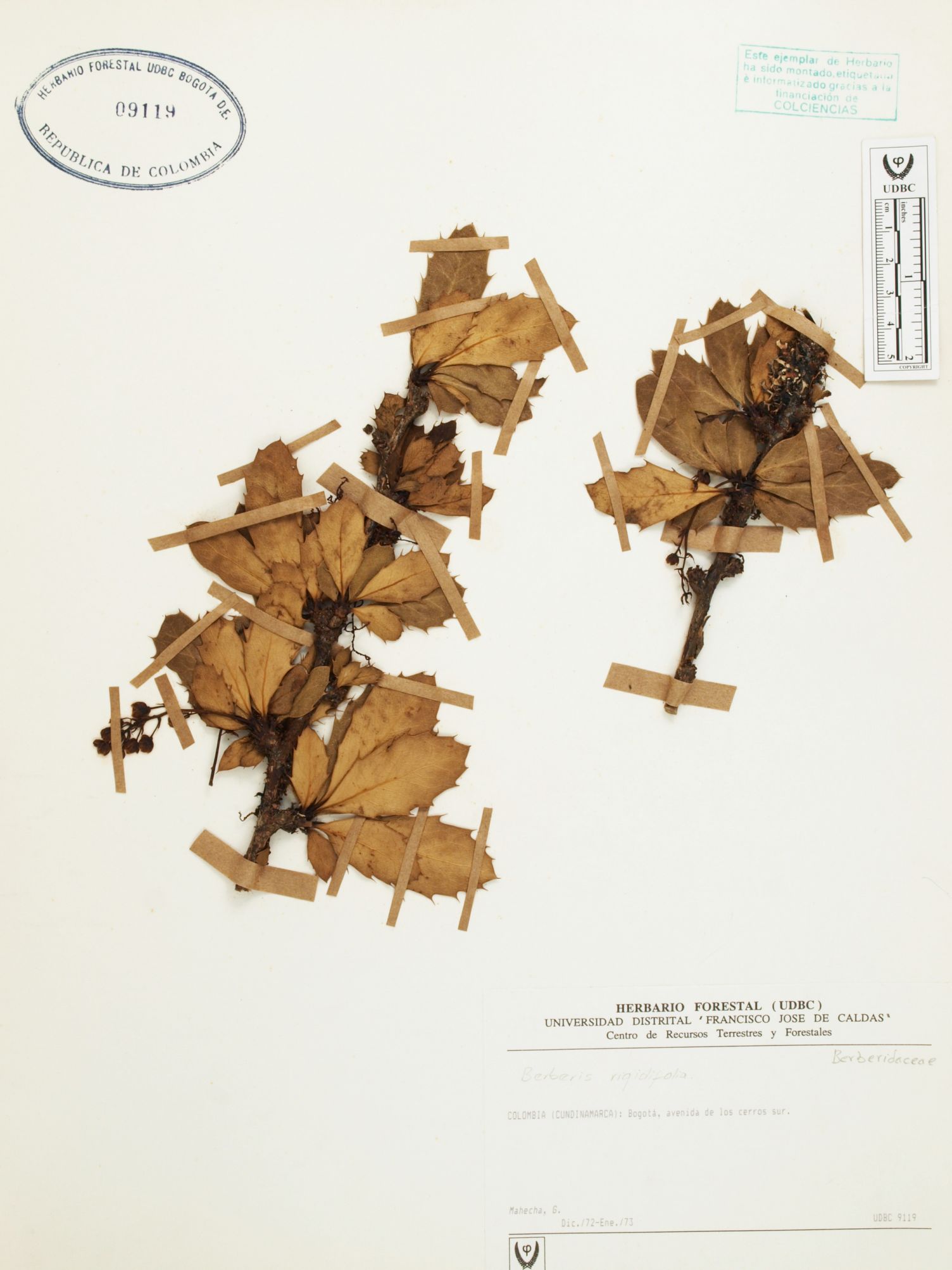 Fotografía del ejemplar Mahecha, G., determinado como Berberis rigidifolia