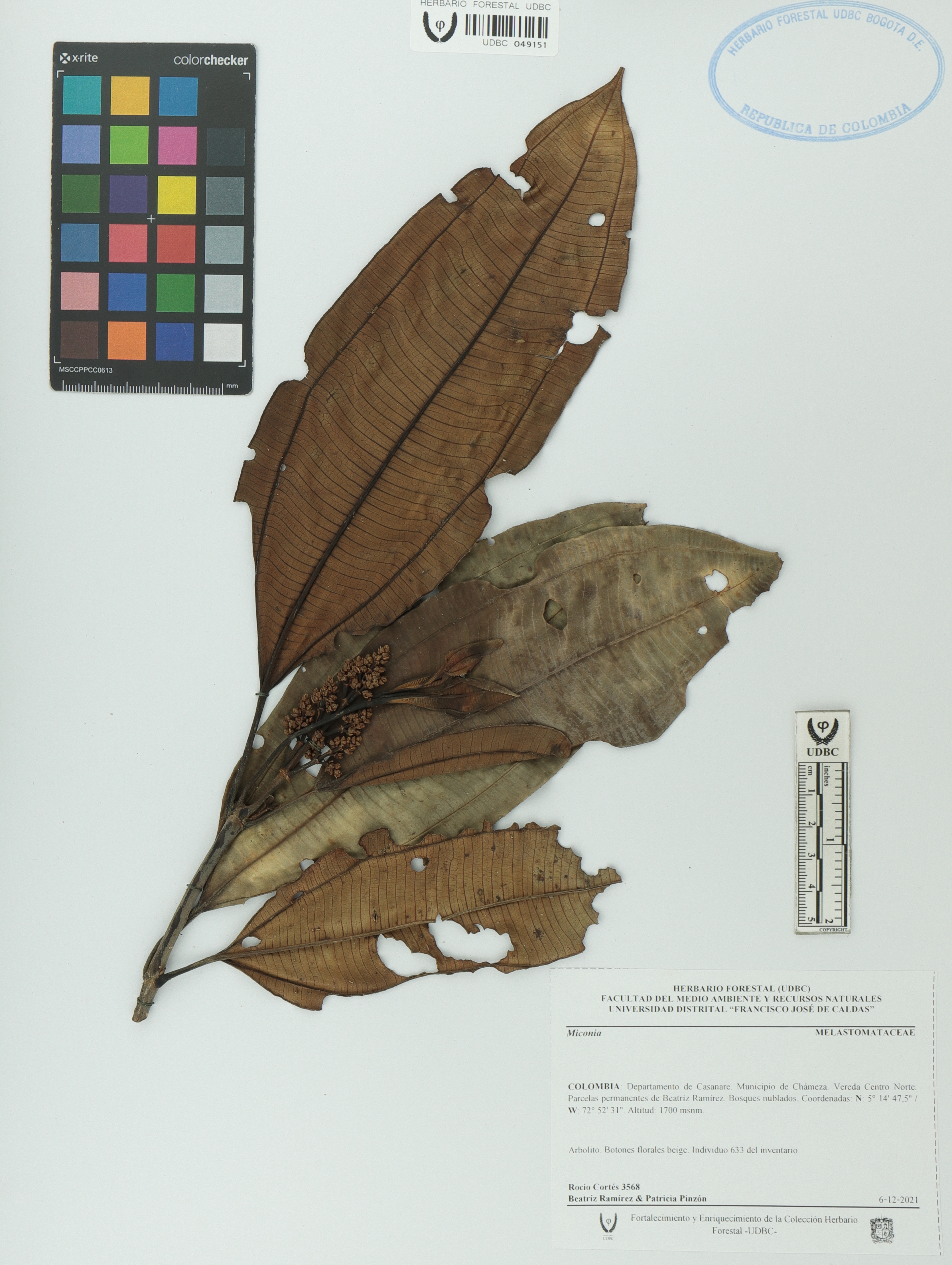 Fotografía del ejemplar Cortés, R. 3568, determinado como Miconia sp.