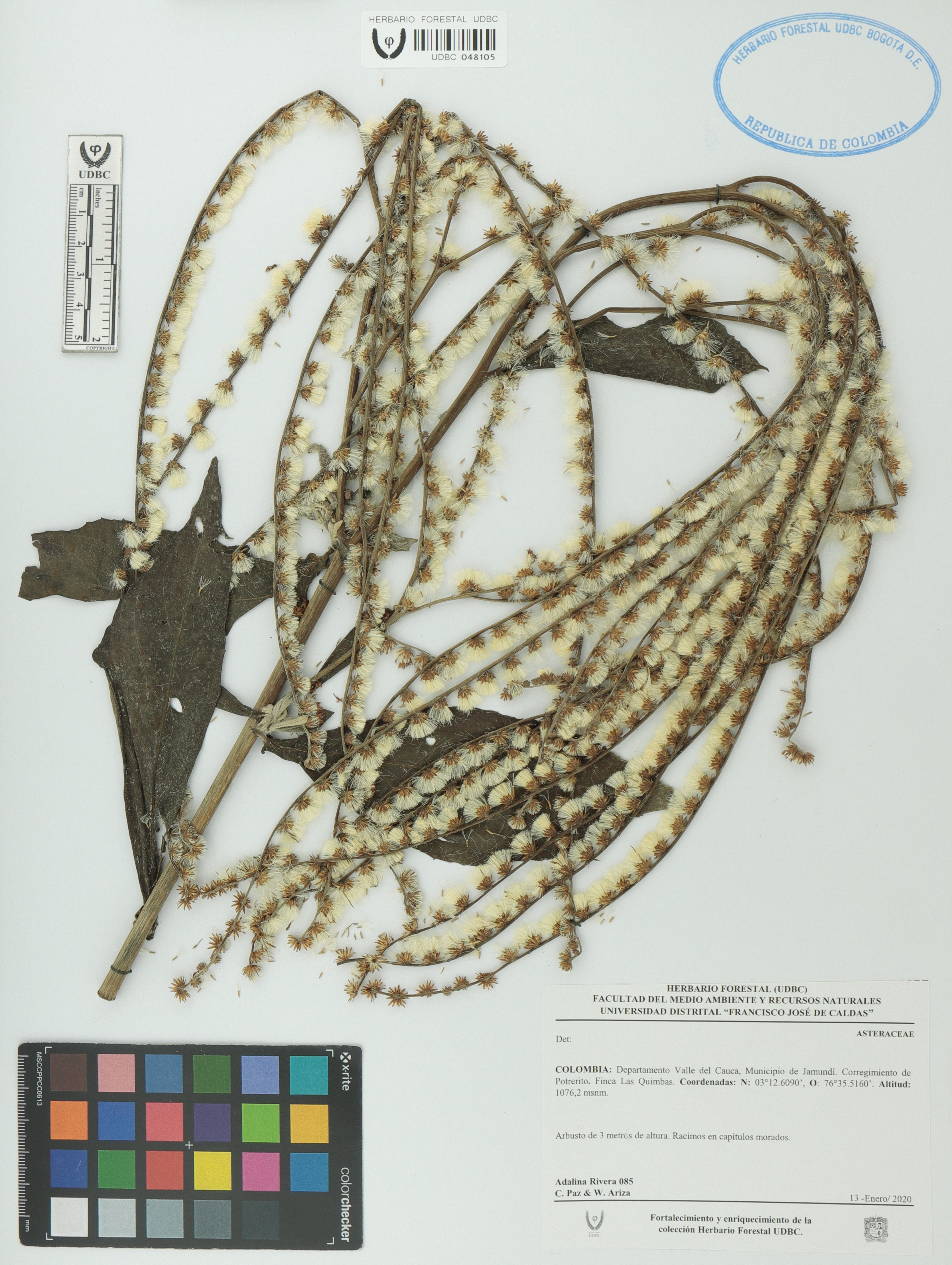 Fotografía del ejemplar Rivera, A. 085, determinado como Asteraceae