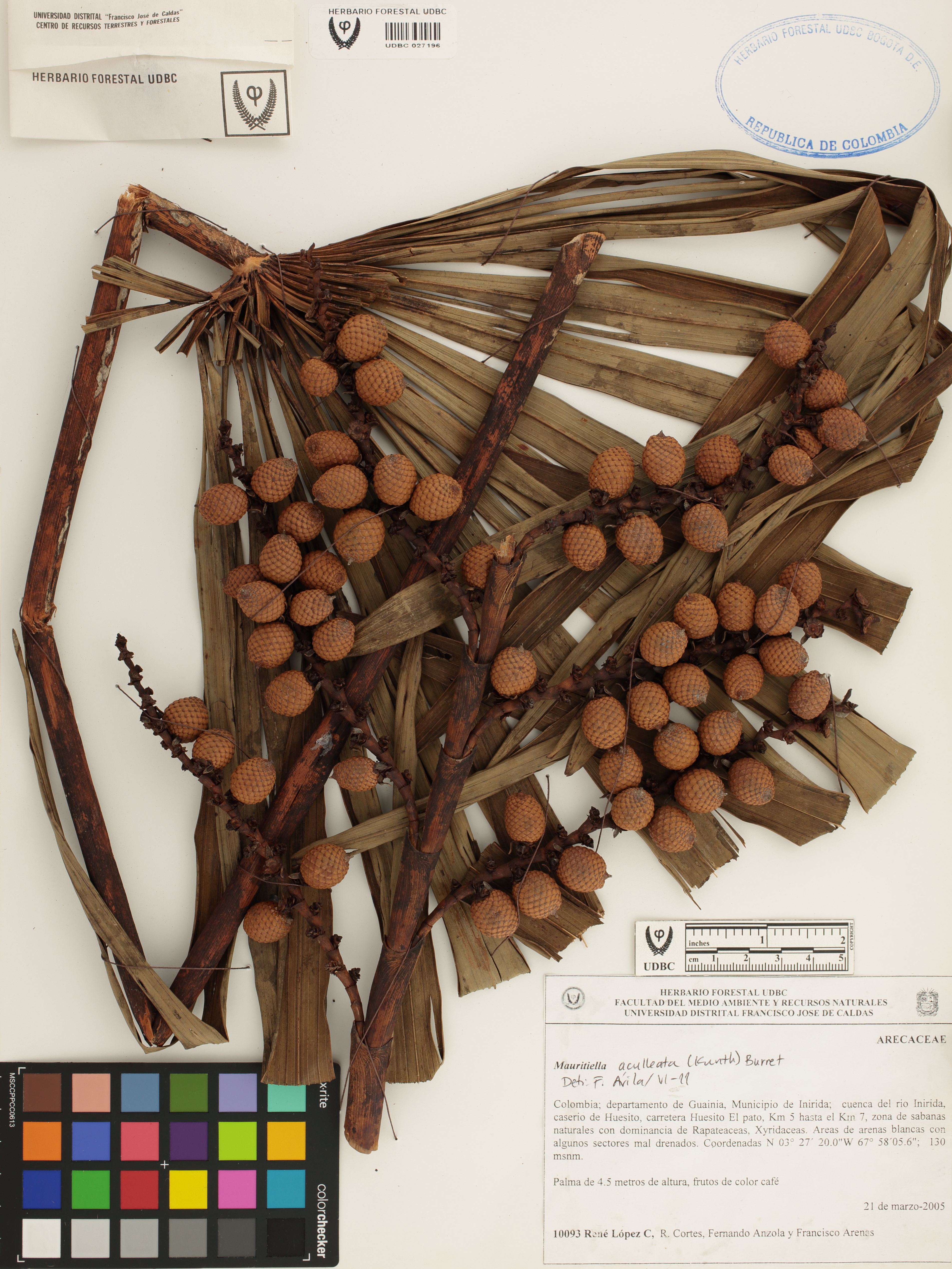 Fotografía del ejemplar López, R. 10093, determinado como Mauritiella aculeata en el año 2011