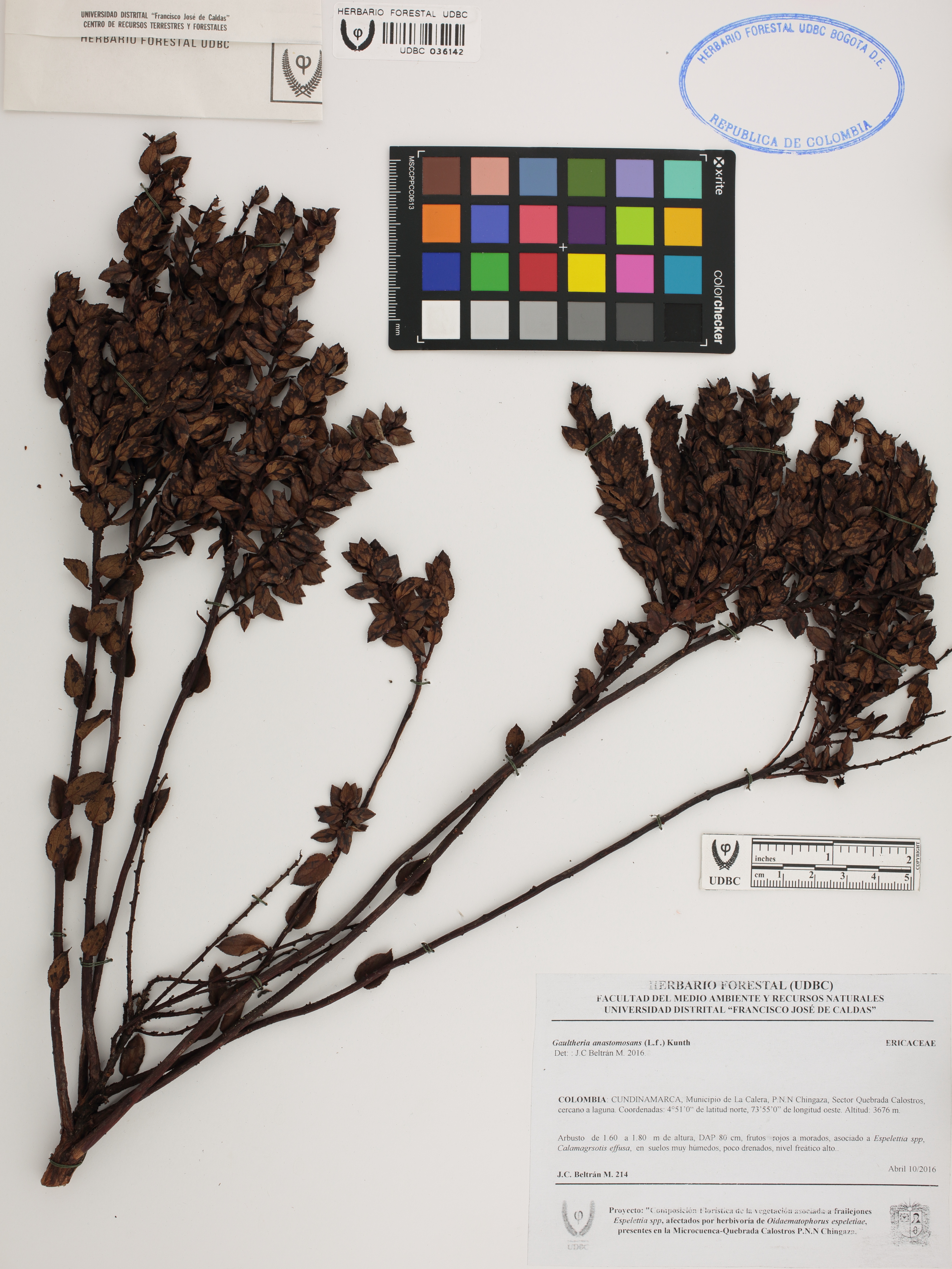 Fotografía del ejemplar Beltrán, J. 214, determinado como Gaultheria anastomosans en el año 2016
