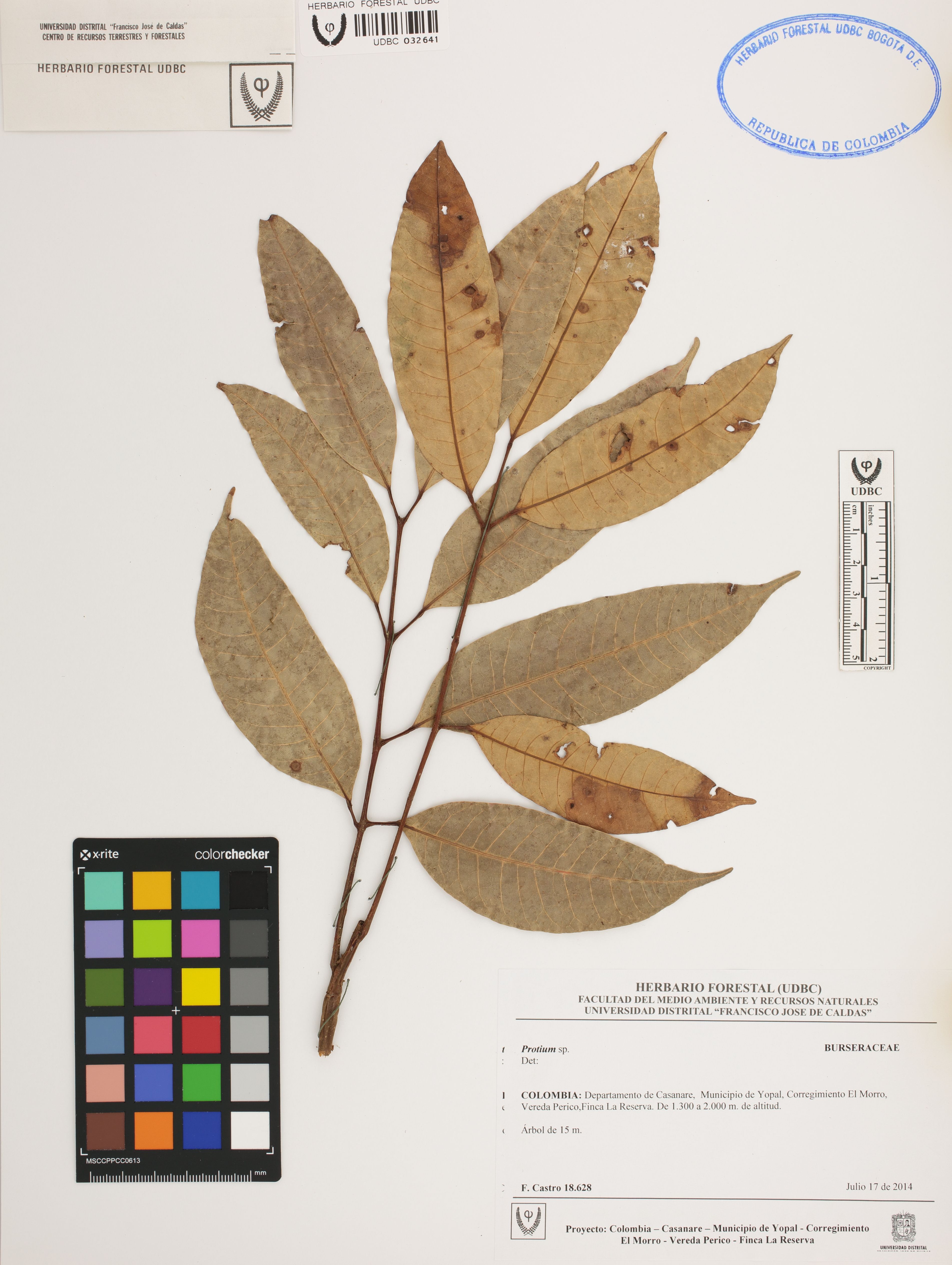 | dc.description | Fotografía del ejemplar Castro, F. 18628, determinado como Protium sp. | |