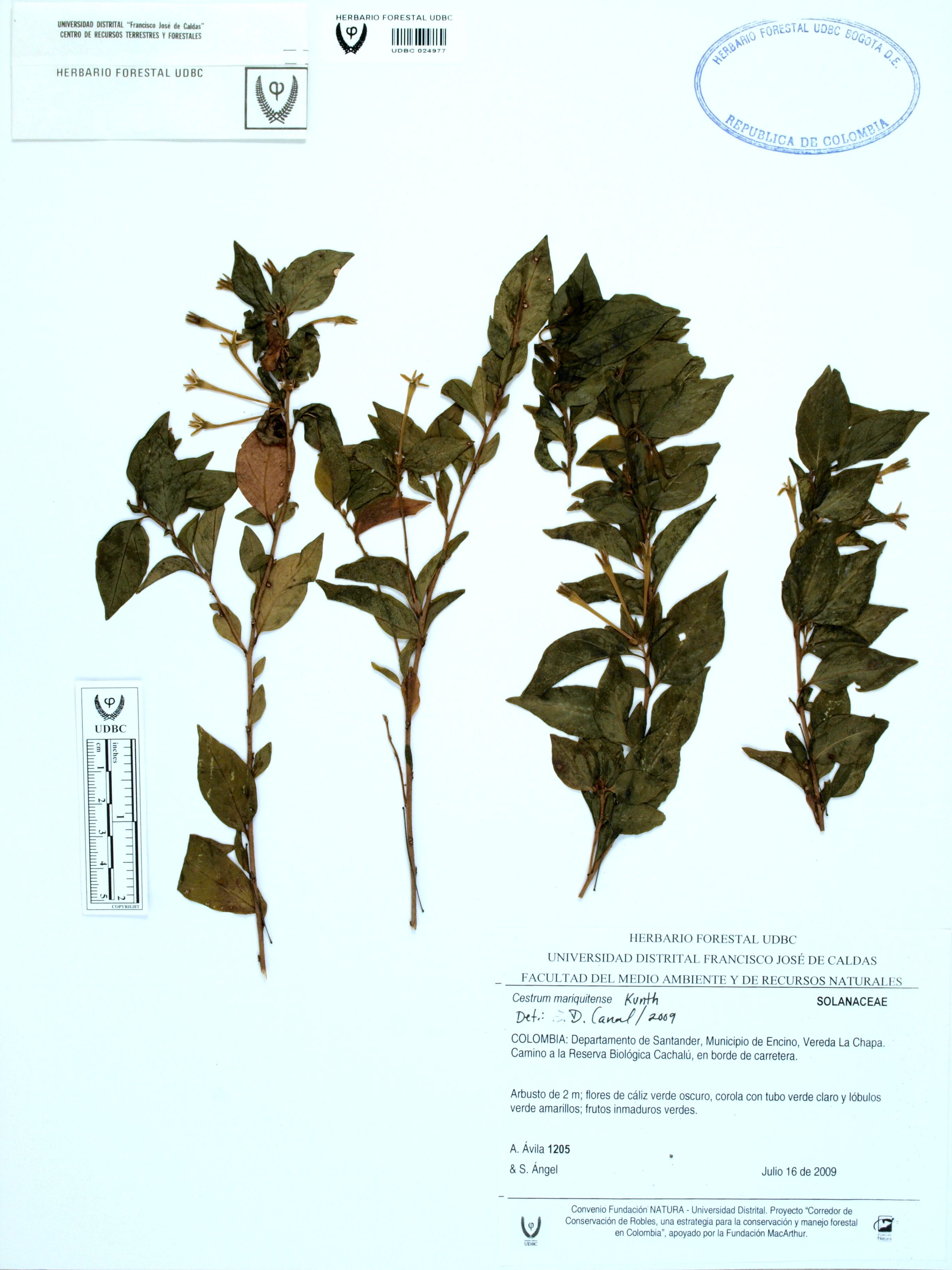 | dc.description | Fotografía del ejemplar Ávila, F. 1205, determinado como Cestrum mariquitense en el año 2009 | |