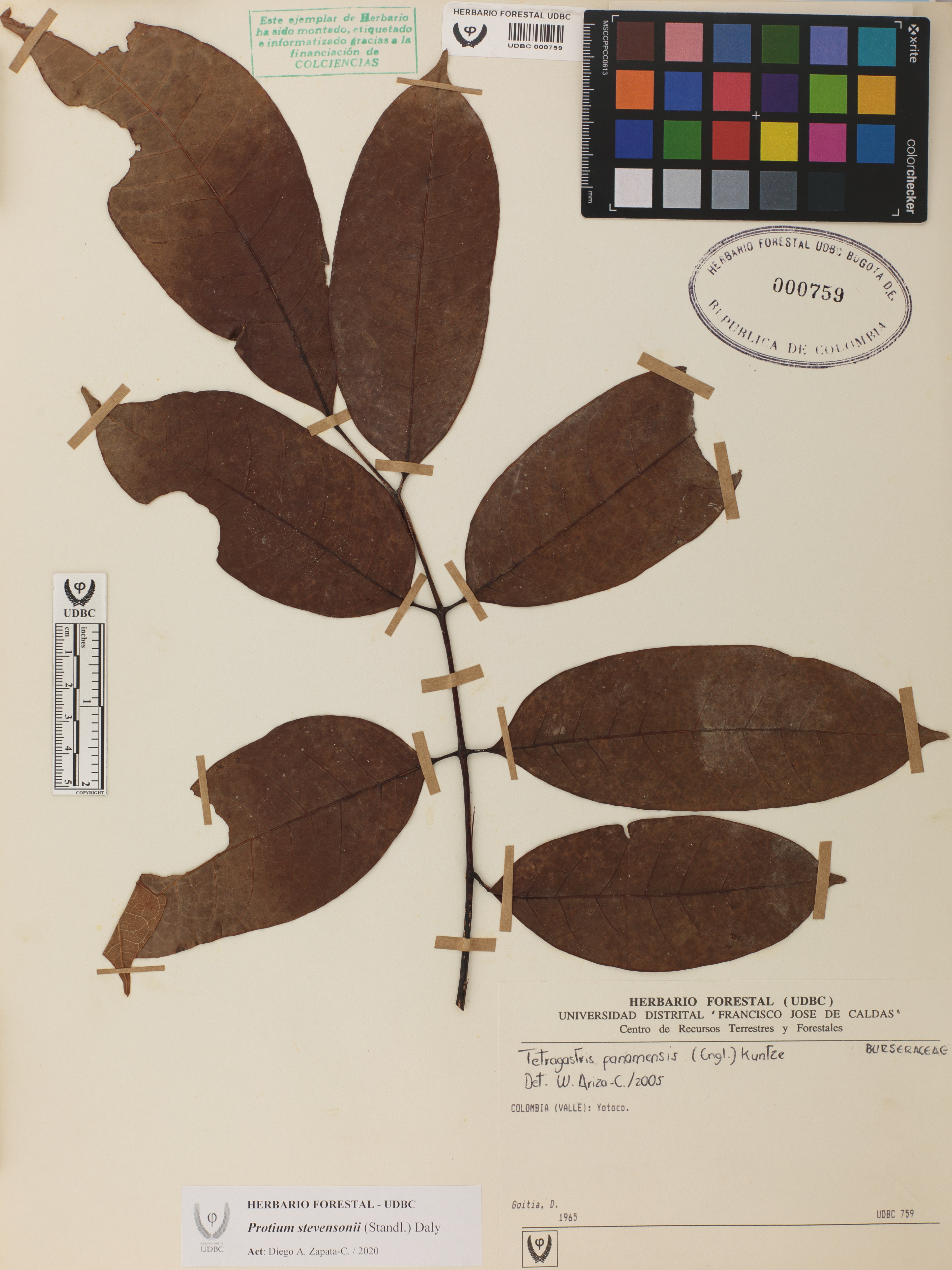 Fotografía del ejemplar Goitia, D., determinado como Protium stevensonii en el año 2005