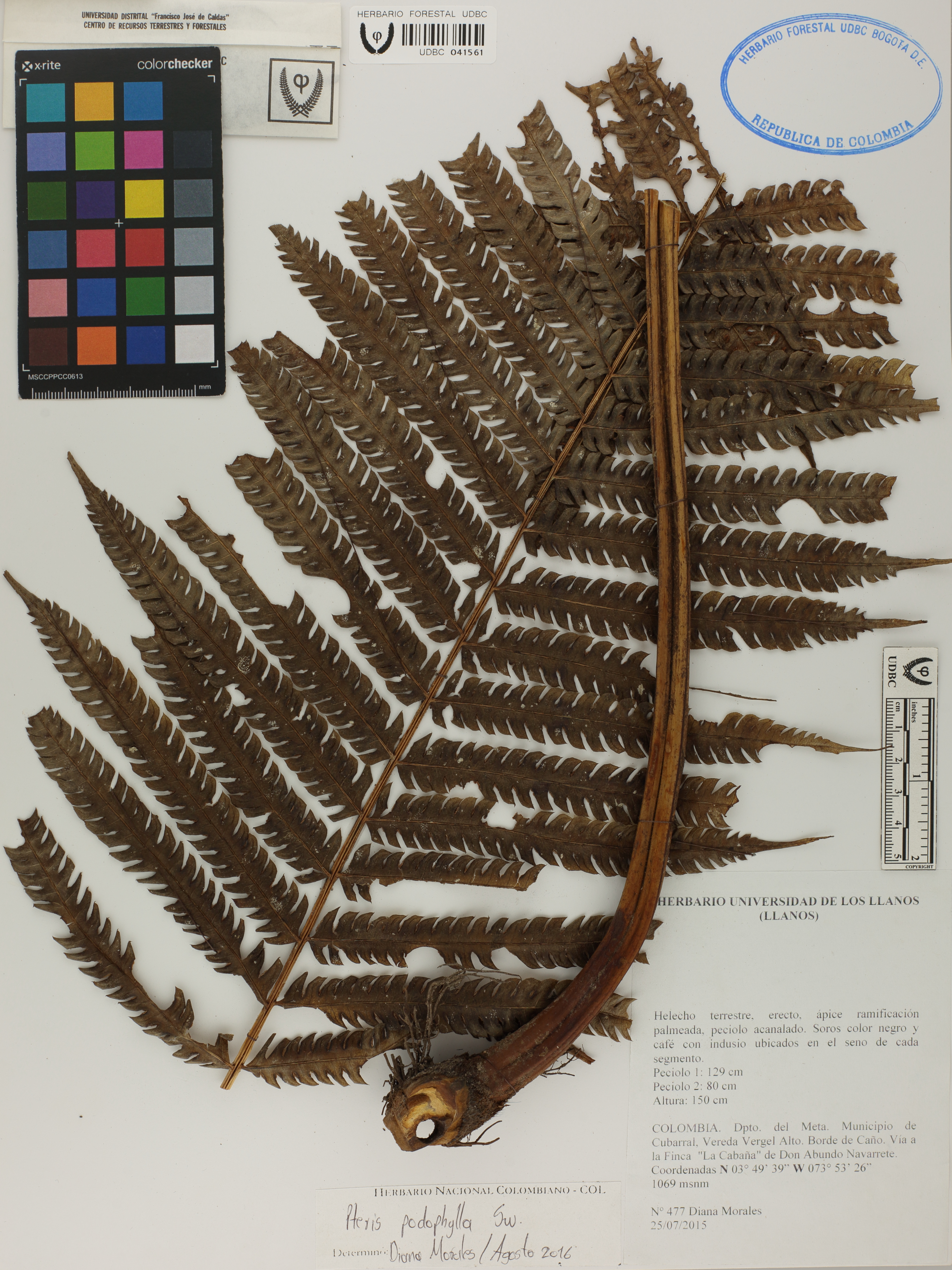 Fotografía del ejemplar Morales, D. 477, determinado como Pteris podophylla en el año 2016