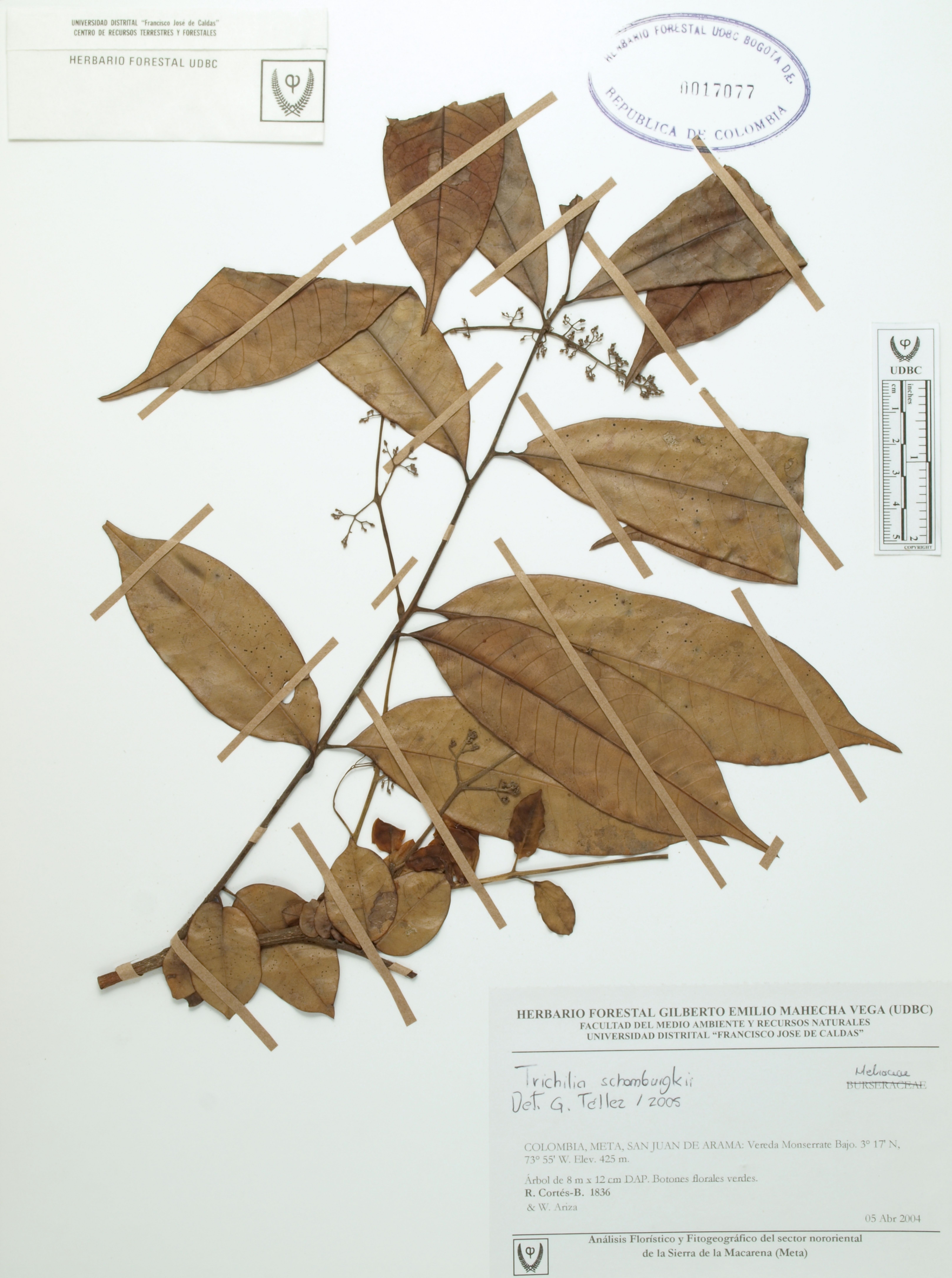 | dc.description | Fotografía del ejemplar Cortés-B., R. 1836, determinado como Trichilia schomburgkii en el año 2005 | |