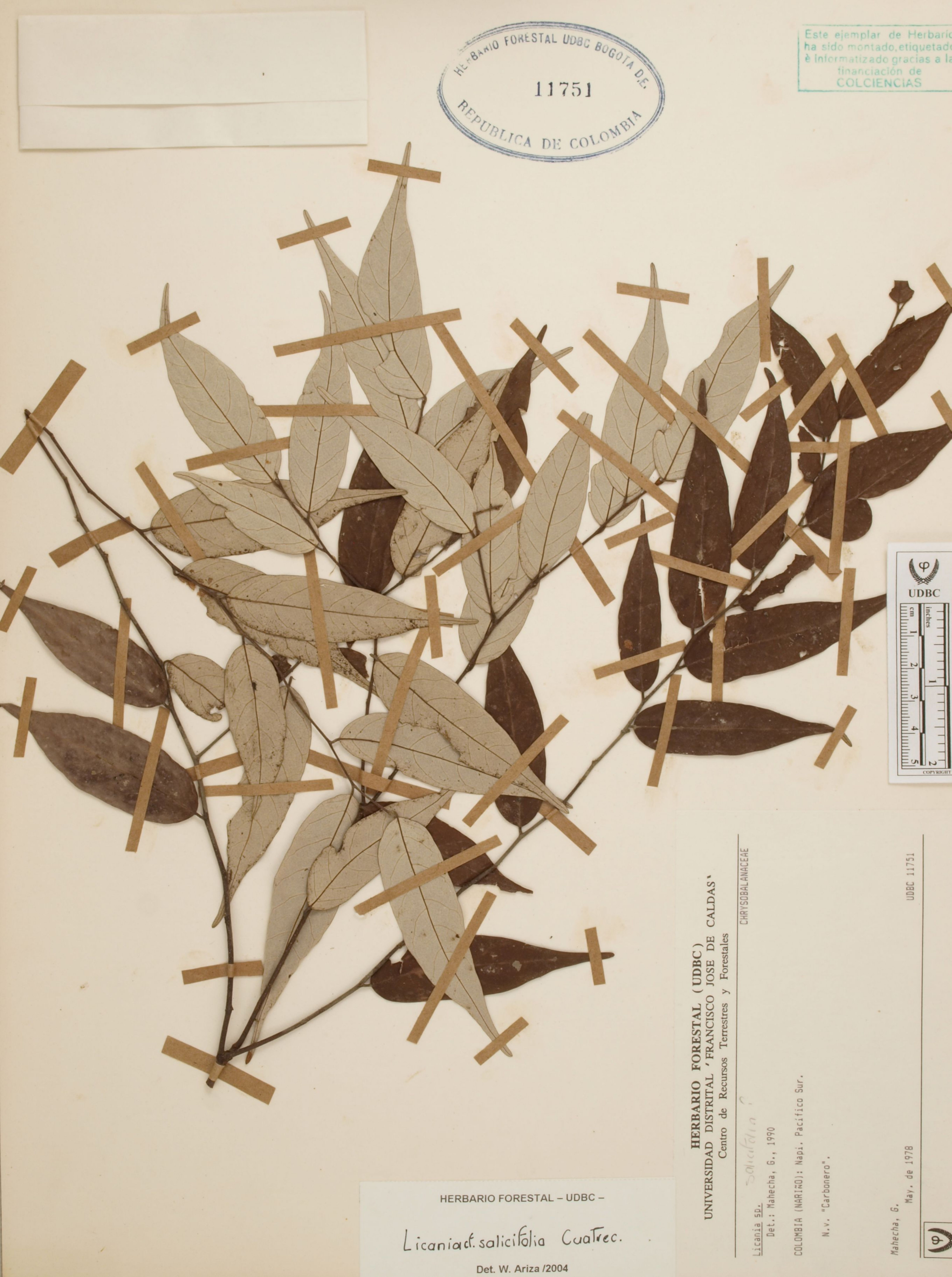 Fotografía del ejemplar Mahecha, G., determinado como Licania salicifolia en el año 2004