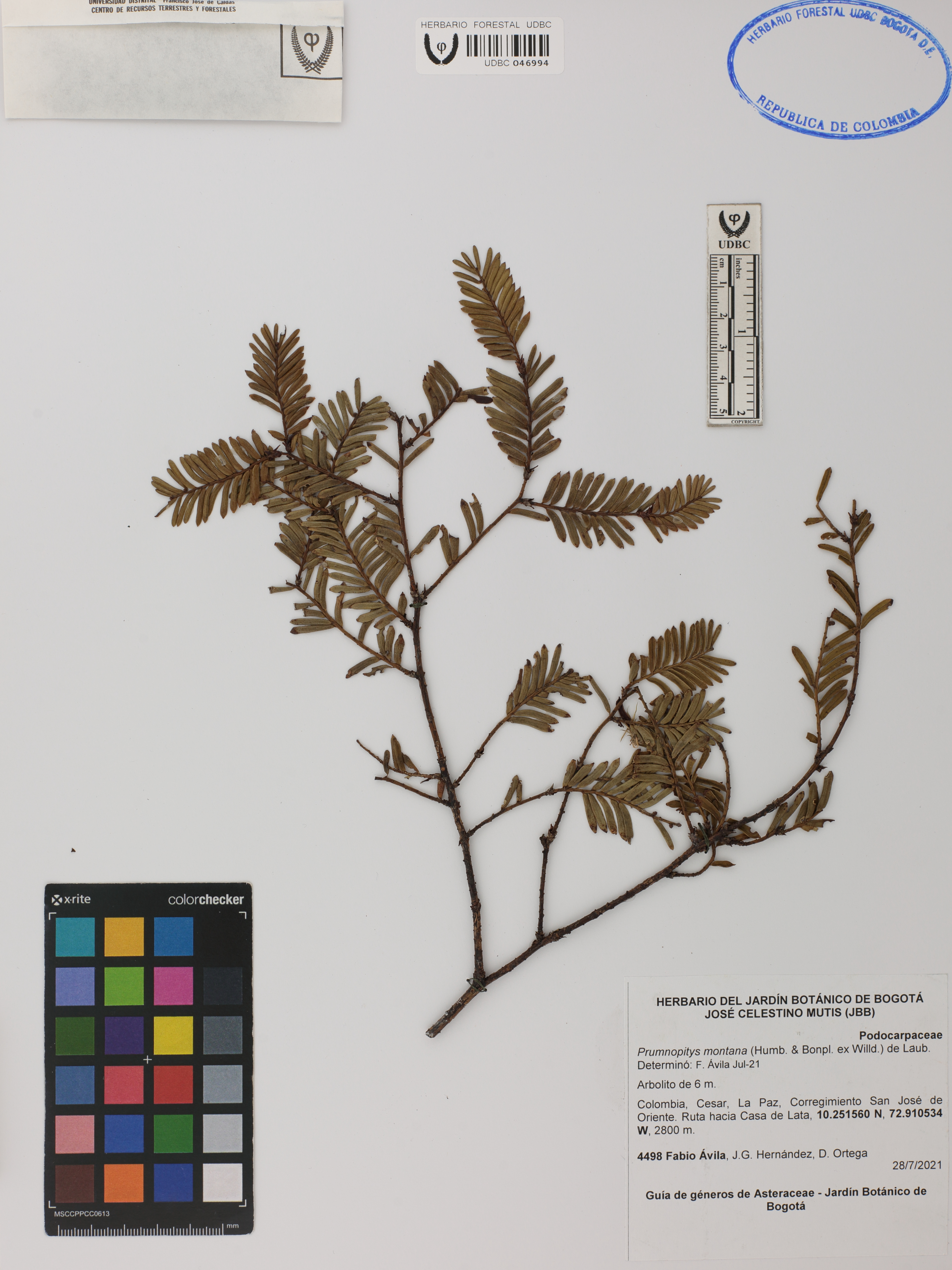 Fotografía del ejemplar Ávila, F. 4498, determinado como Prumnopitys montana en el año 2021
