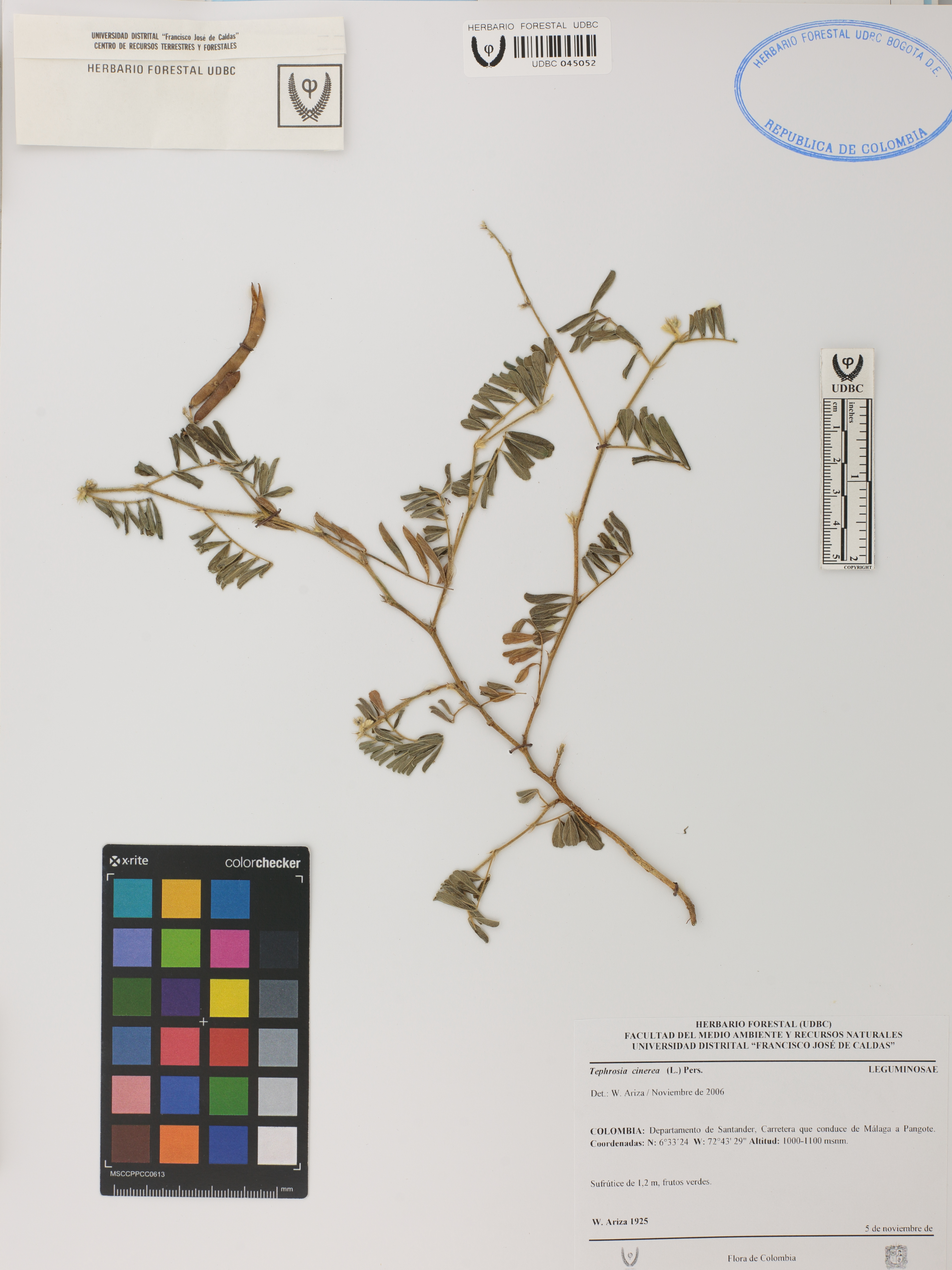 Fotografía del ejemplar Ariza-Cortés, W. 1925, determinado como Tephrosia cinerea en el año 2006