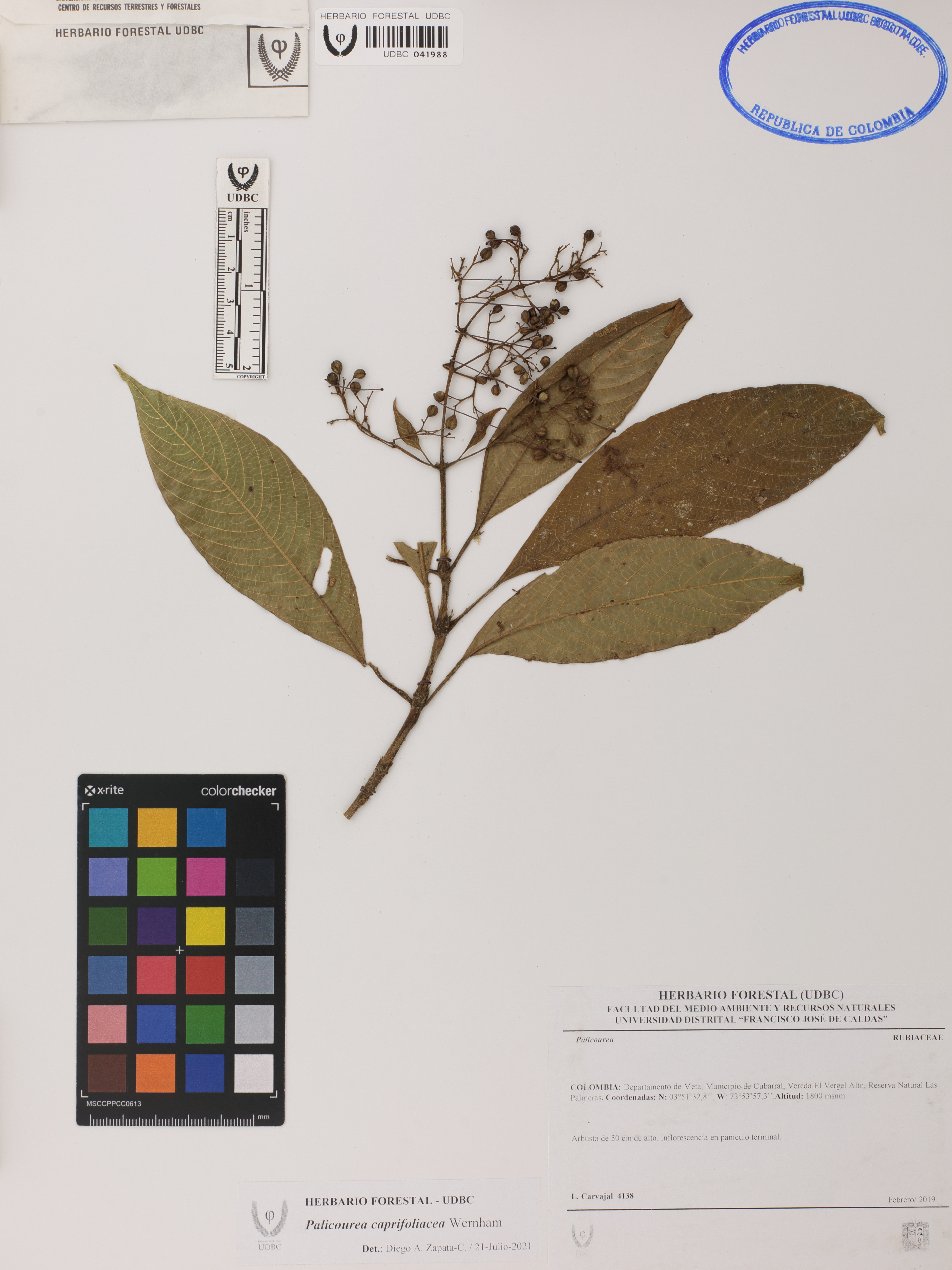 | dc.description | Fotografía del ejemplar Carvajal, L. 4138, determinado como Palicourea caprifoliacea en el año 2021 | |
