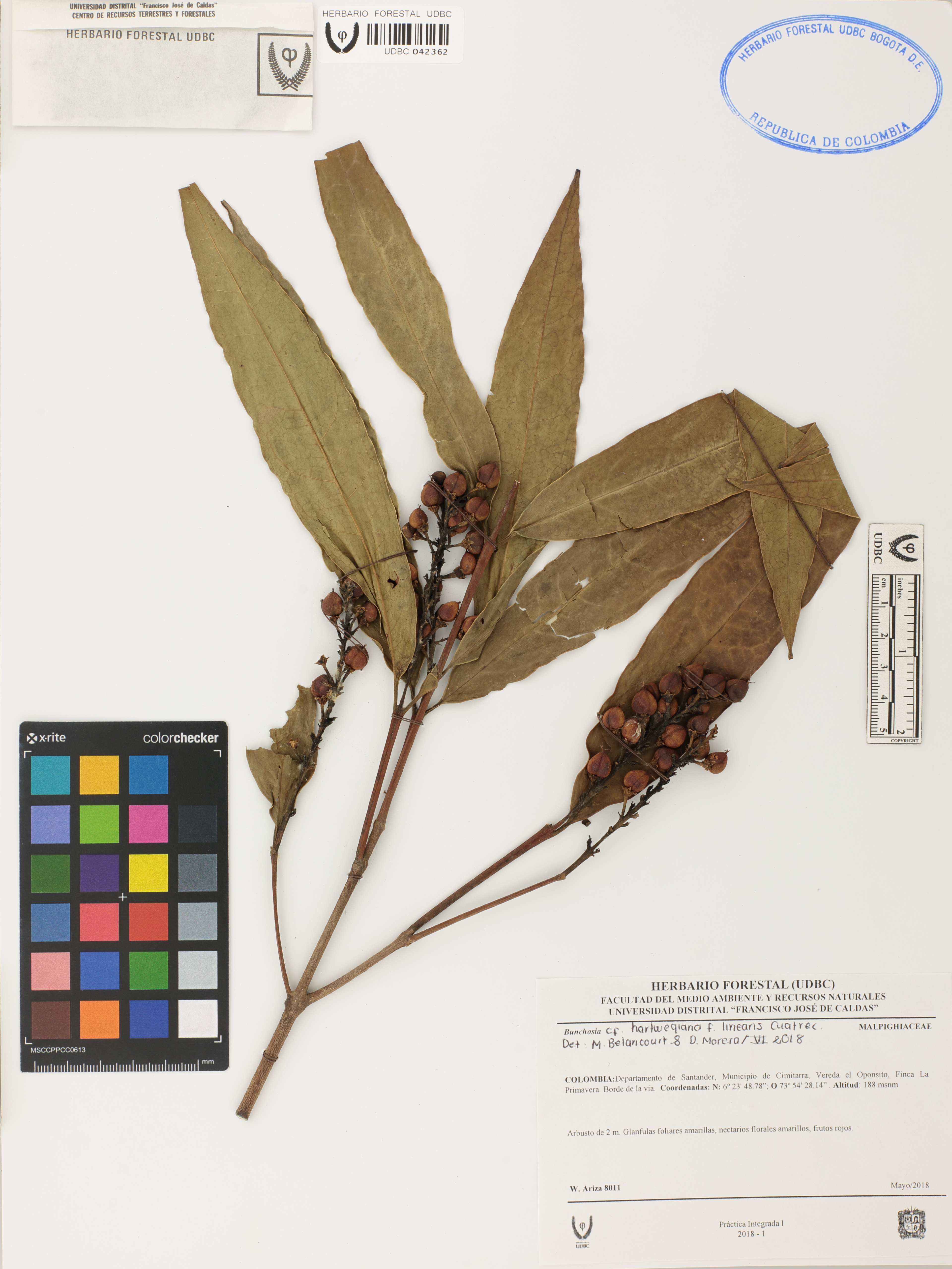 Fotografía del ejemplar Ariza, W. 8011, determinado como Bunchosia hartwegiana en el año 2018
