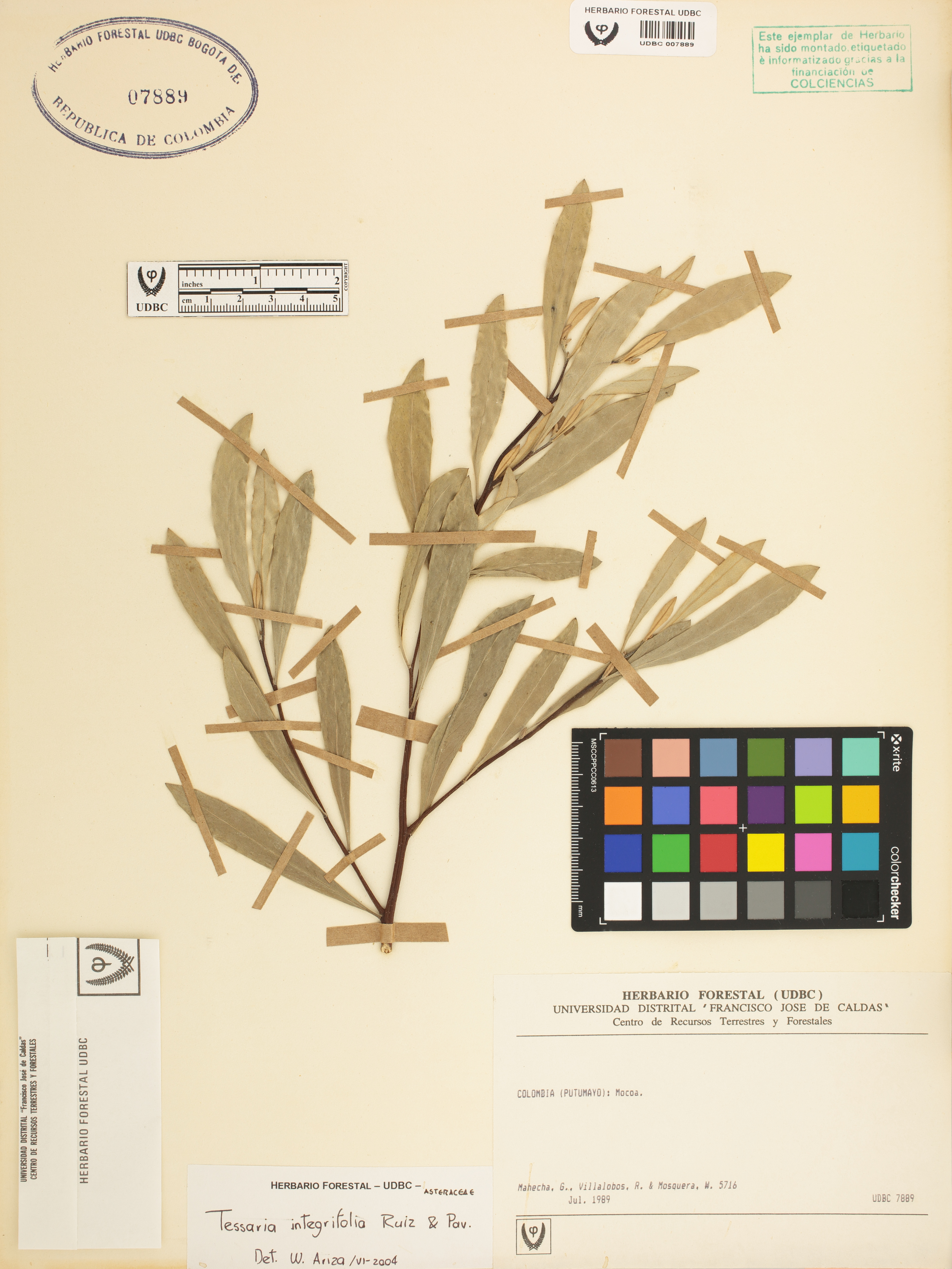 Fotografía del ejemplar Mahecha, G. 5716, determinado como Tessaria integrifolia en el año 2004