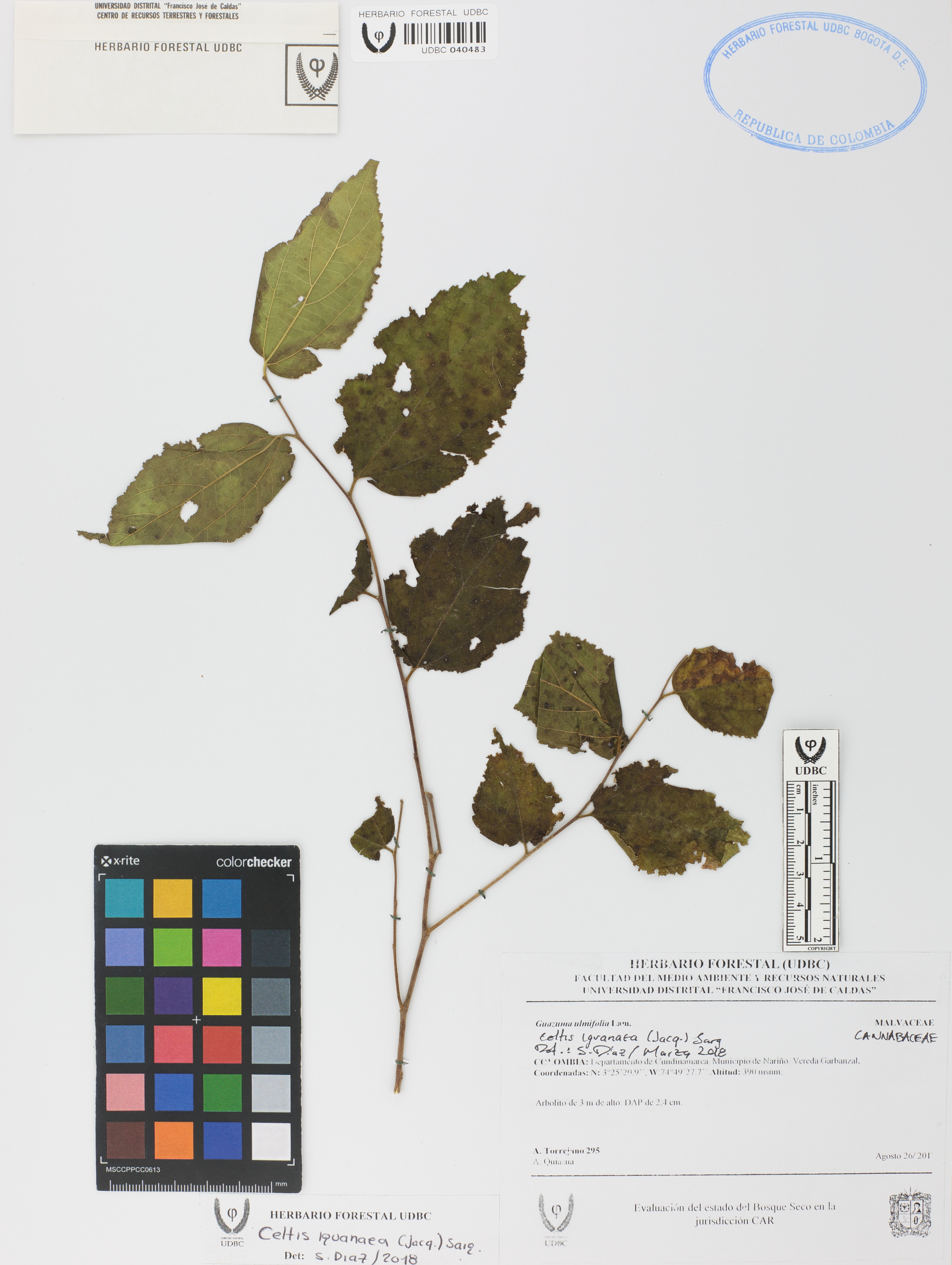 Fotografía del ejemplar Torrejano, A. 295, determinado como Celtis iguanaea en el año 2018
