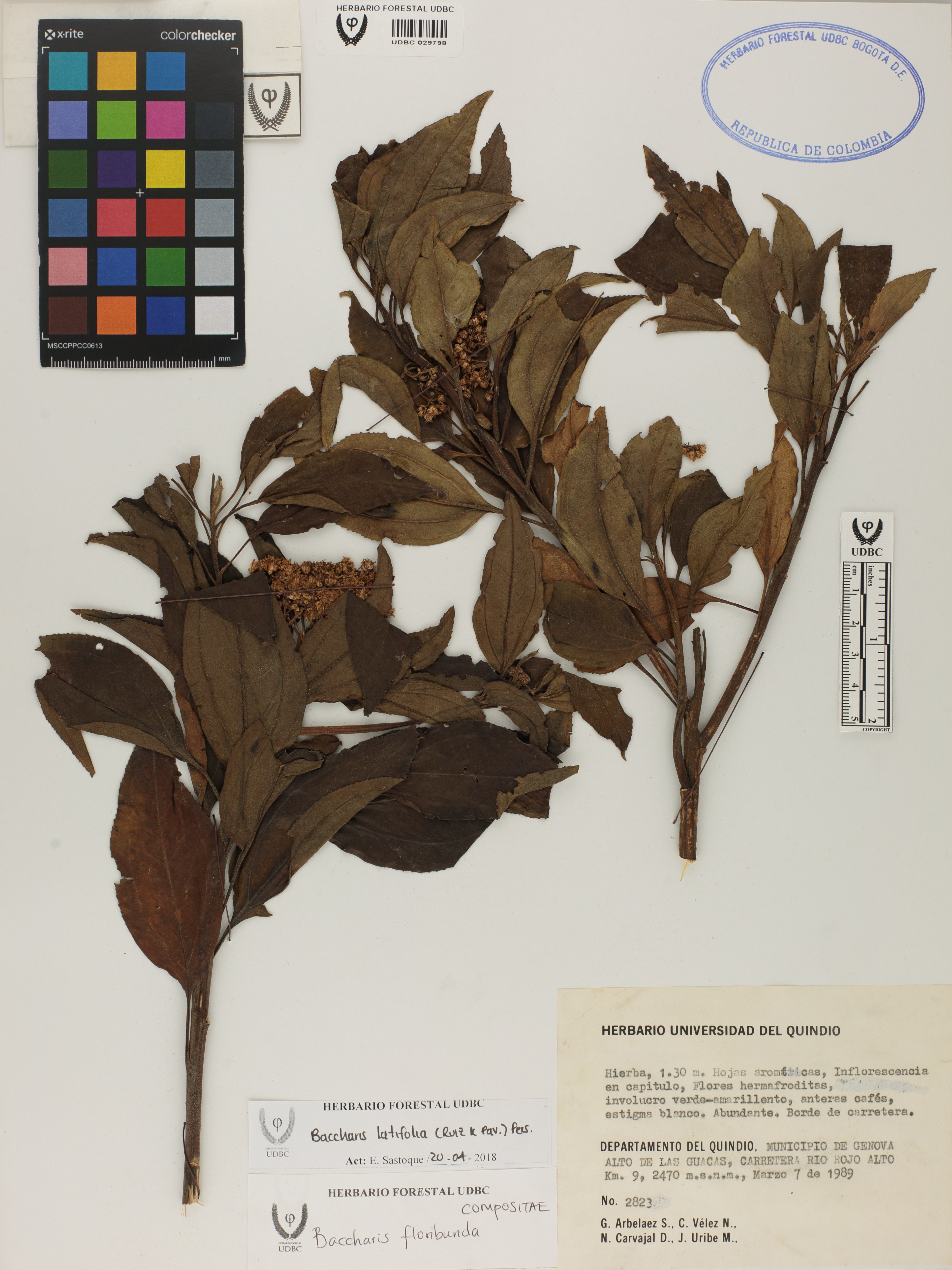 Fotografía del ejemplar Arbeláez, G. 2823, determinado como Baccharis latifolia