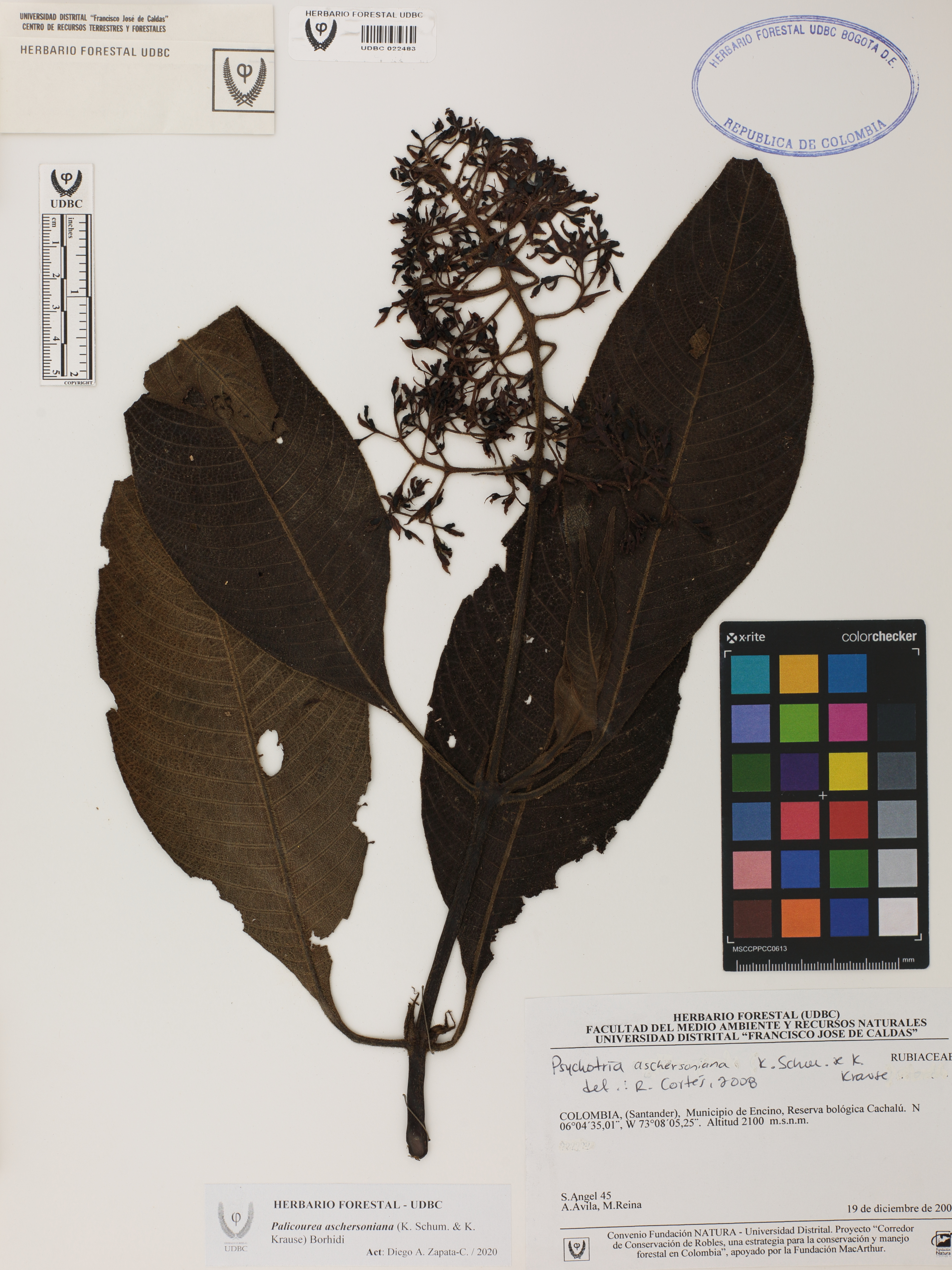 Fotografía del ejemplar Ángel, S. 45, determinado como Palicourea aschersoniana en el año 2008