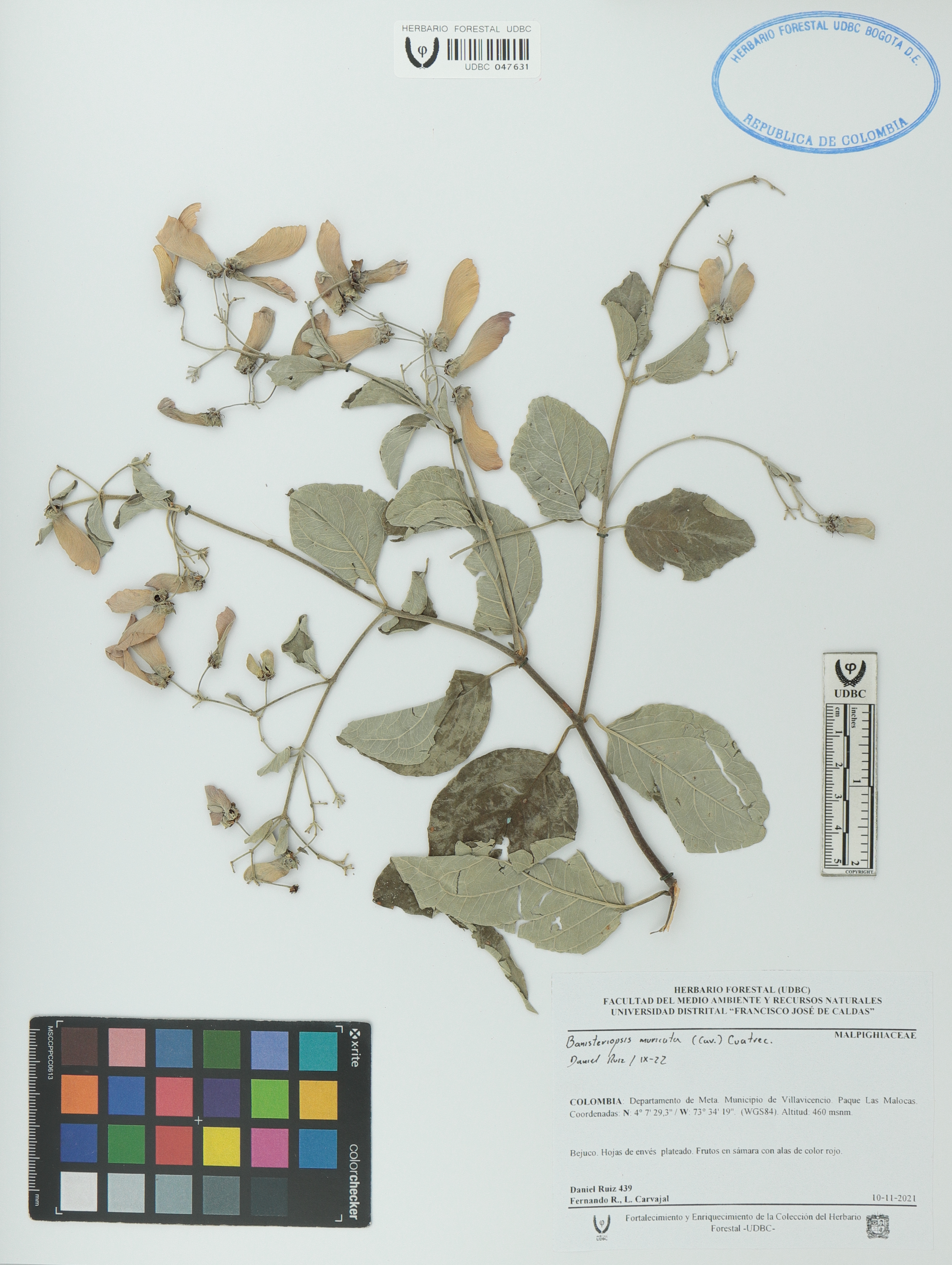 | dc.description | Fotografía del ejemplar Ruiz, Daniel 439, determinado como Banisteriopsis muricata en el año 2022 | |