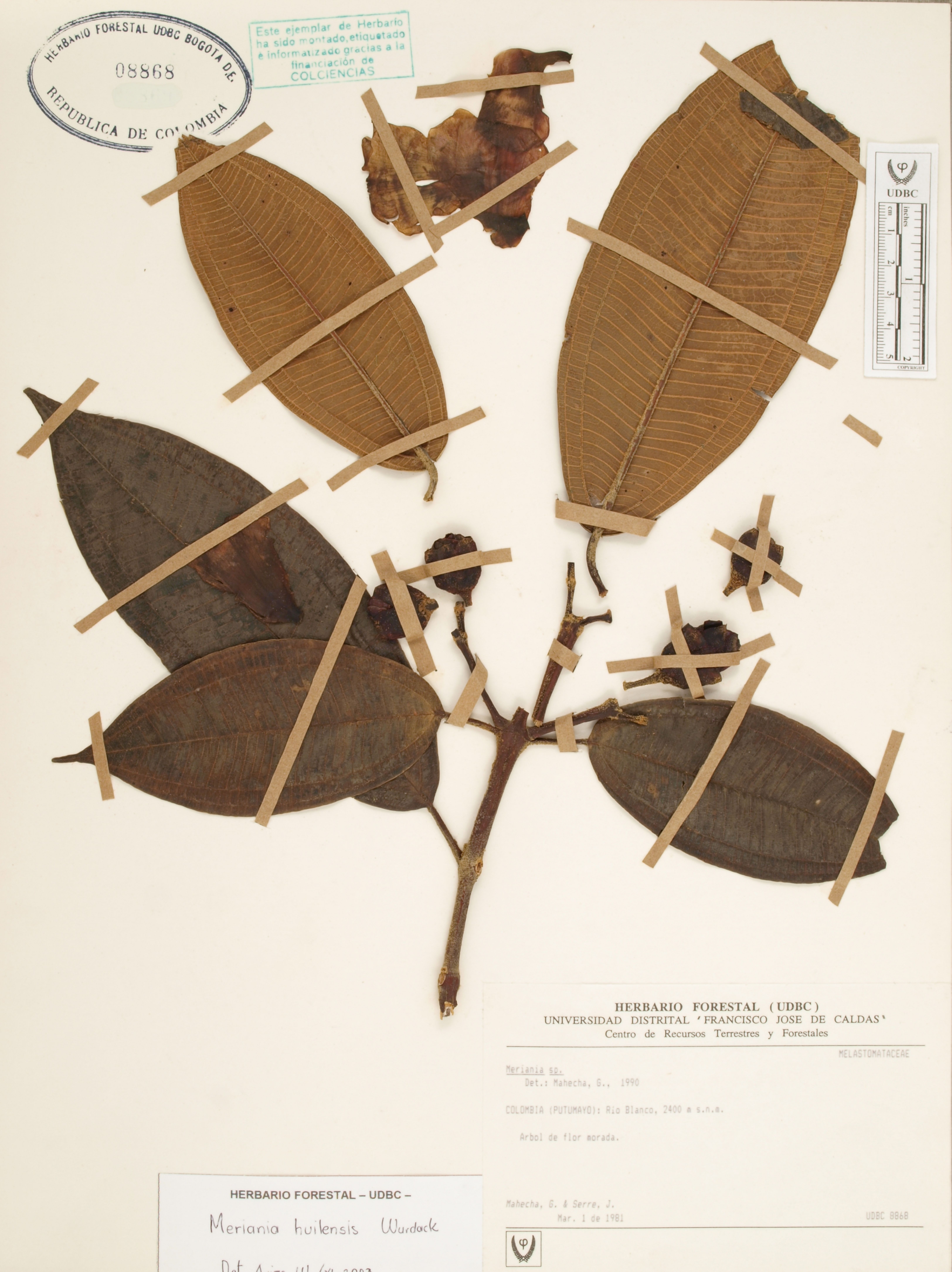 Fotografía del ejemplar Mahecha, G., determinado como Meriania huilensis en el año 2003