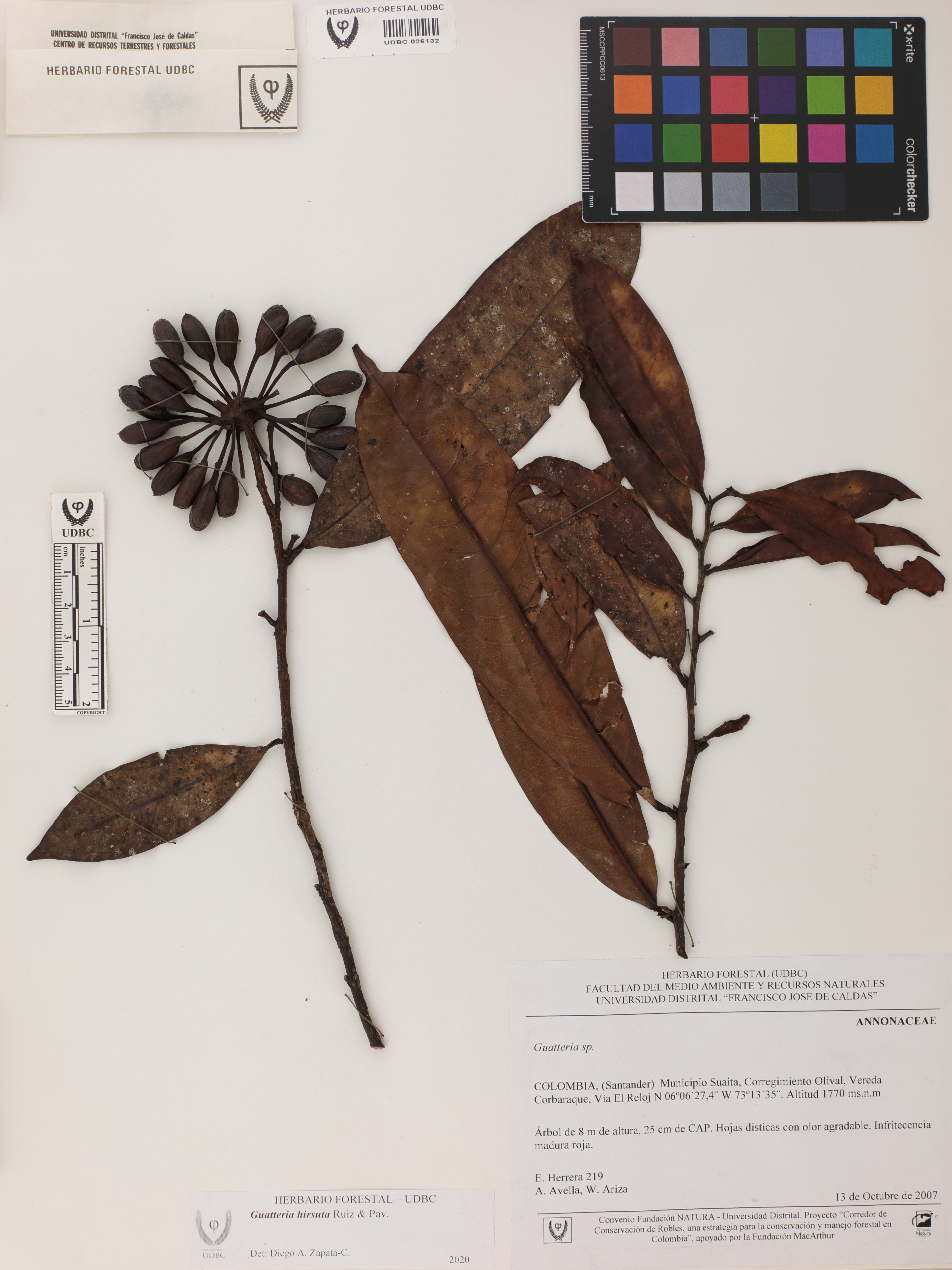 Fotografía del ejemplar Herrera, E. 219, determinado como Guatteria hirsuta en el año 2020