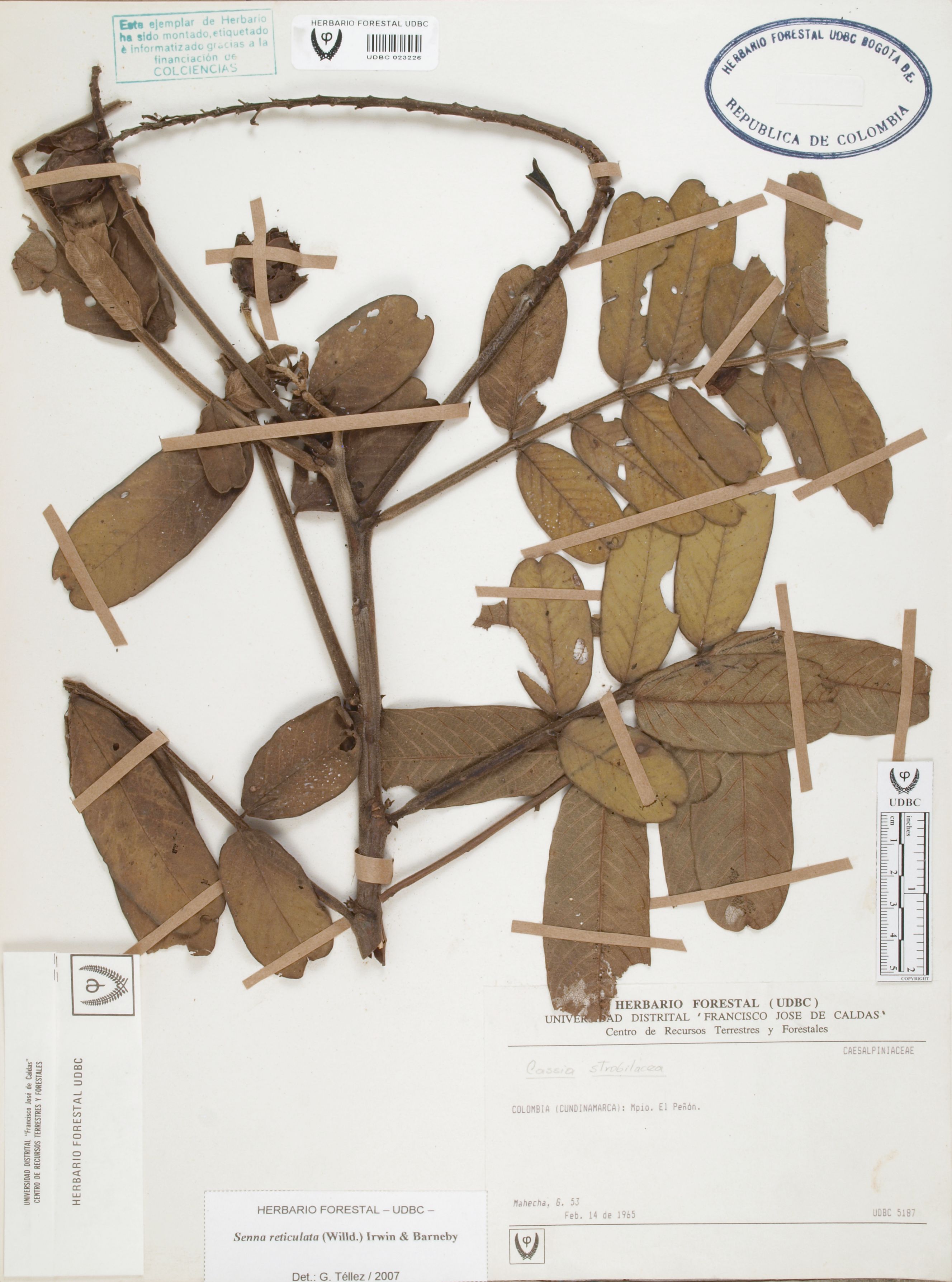| dc.description | Fotografía del ejemplar Mahecha, G. 53, determinado como Senna reticulata en el año 2007 | |
