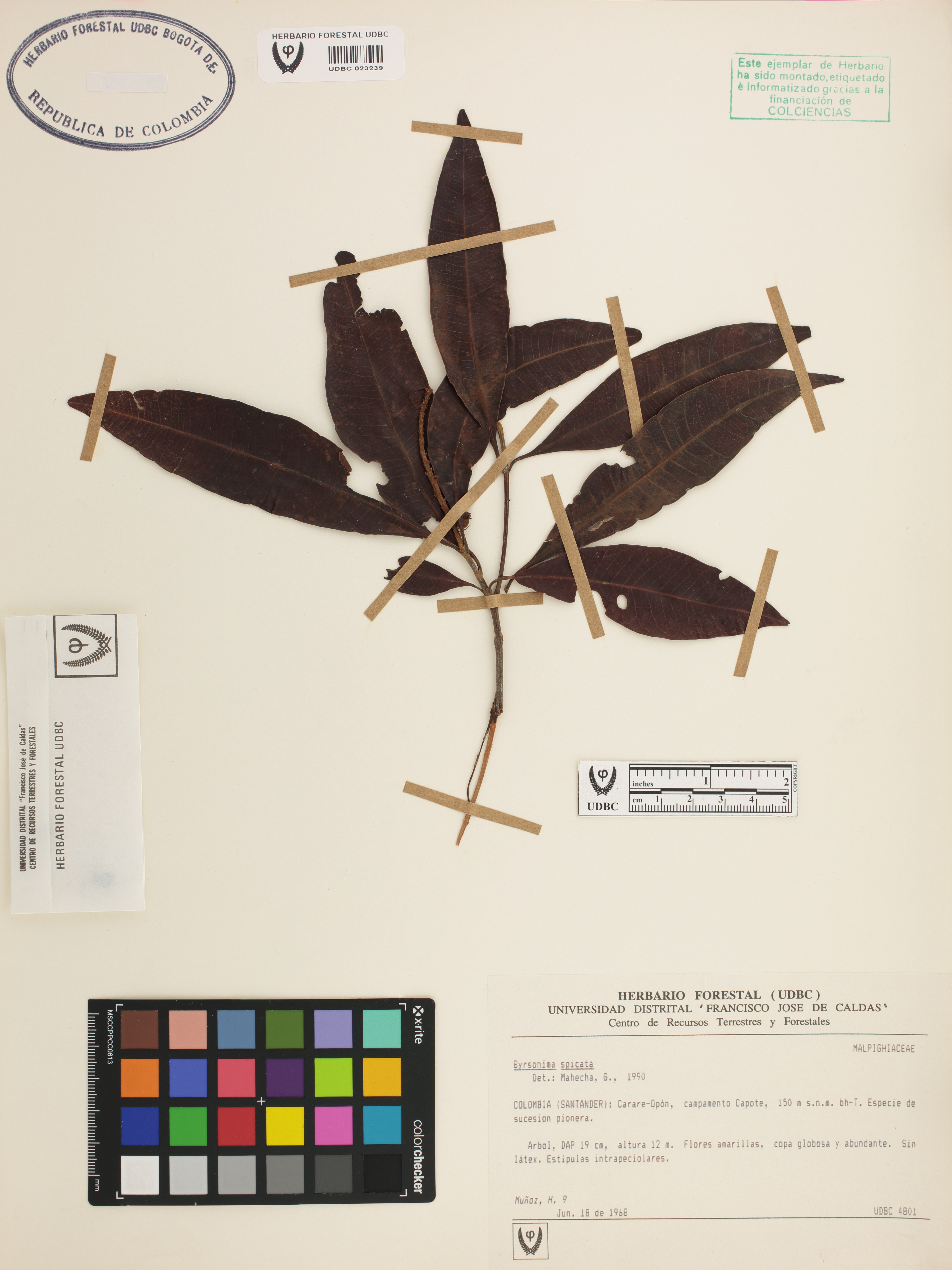 Fotografía del ejemplar Muñoz, H. 9, determinado como Byrsonima spicata en el año 1990