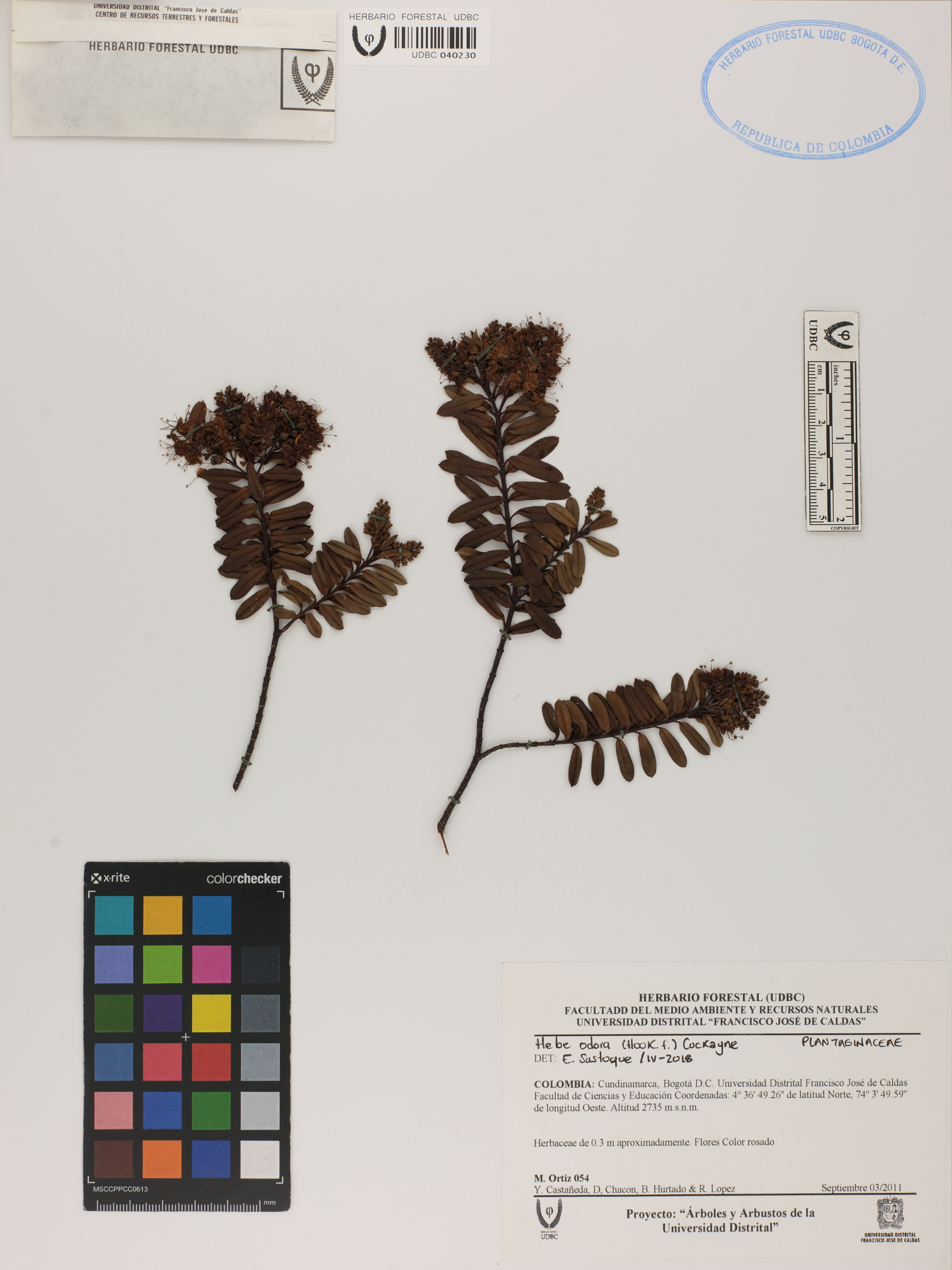 Fotografía del ejemplar Ortiz, M. 54, determinado como Hebe odora en el año 2018