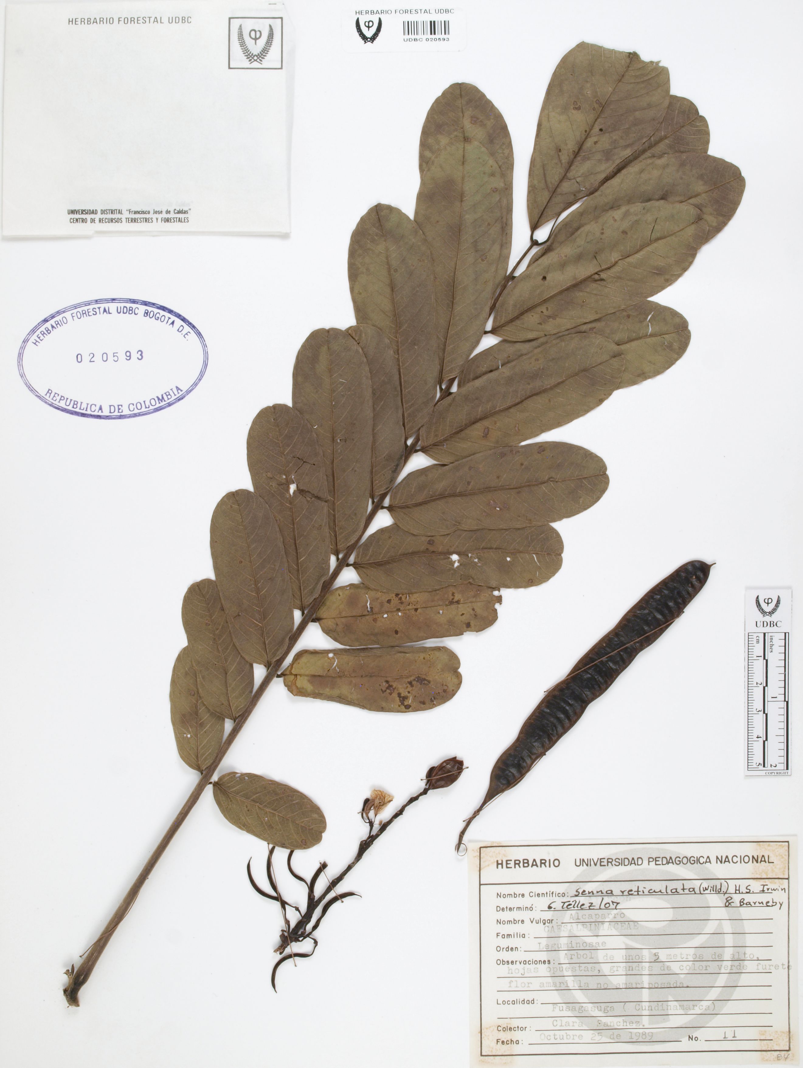 Fotografía del ejemplar Sánchez, C. 11, determinado como Senna reticulata en el año 2007